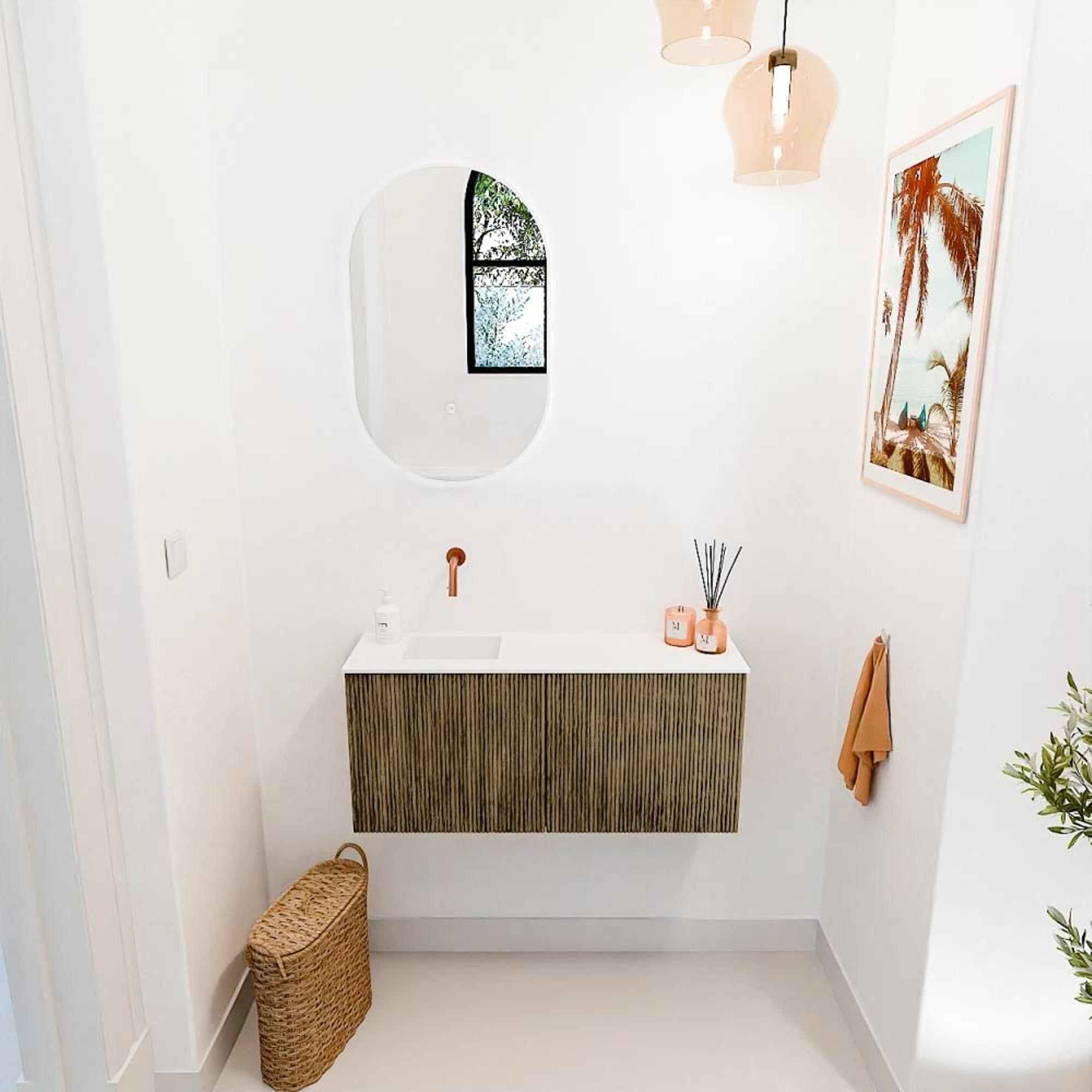 Mondiaz JOYA 90cm meuble de salle de bains - couleur Dusk - Vasque FAYE position Gauche Sans trou de robinet couleur Talc.