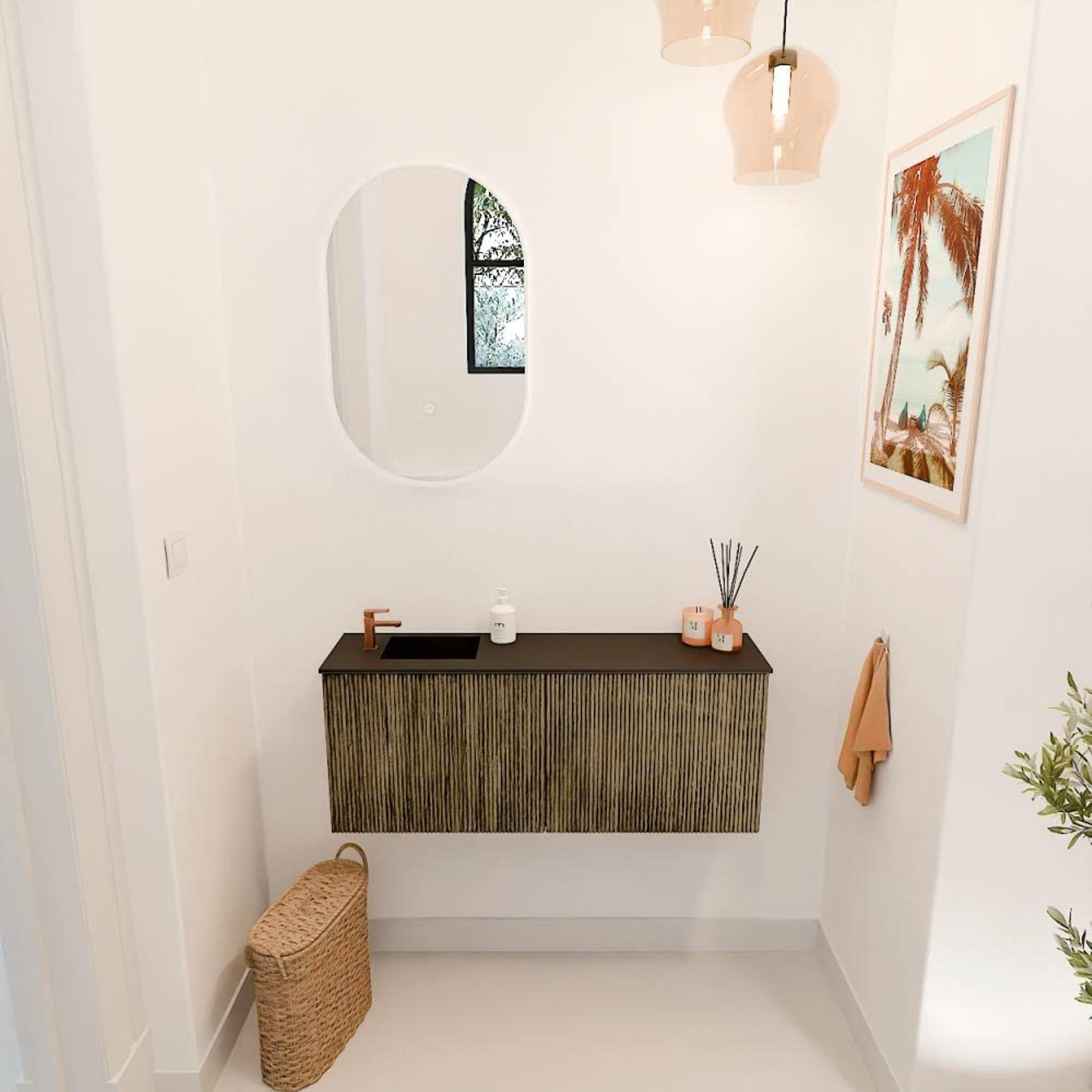 La structure verticale rainurée sur les façades donne au meuble un aspect contemporain et raffiné qui attire immédiatement l'attention. La couleur chaude Dusk crée une atmosphère naturelle et calme, idéale pour donner à votre salle de bains un look luxueux et pourtant accueillant. Ce meuble est un choix parfait si vous aimez un design moderne avec une touche subtile, ce qui lui permet de s'intégrer facilement dans divers styles d'intérieur. Ainsi, vous profitez chaque jour d'une salle de bains qui est non seulement fonctionnelle, mais aussi un plaisir pour les yeux.
