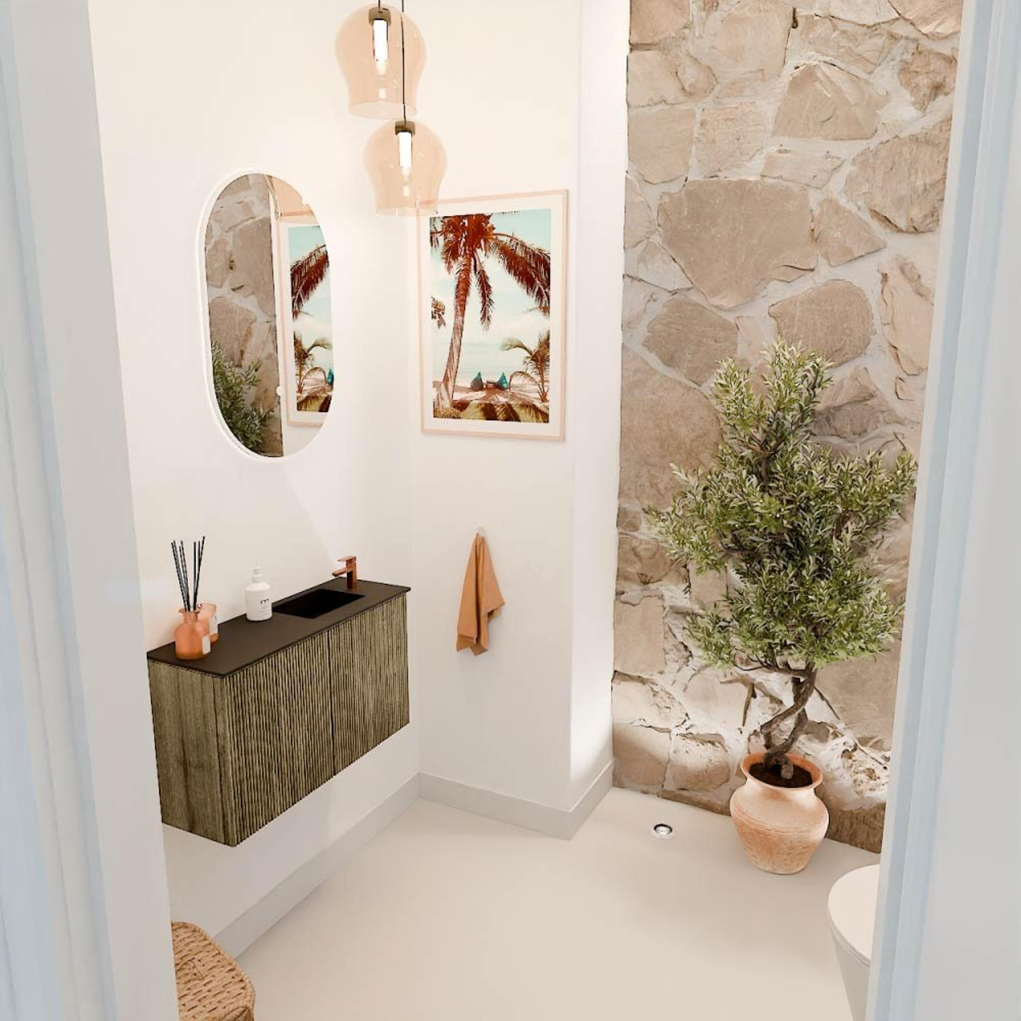 Avec ses façades en chêne naturel et sa finition raffinée, ce meuble dégage une pure élégance. La couleur chaude Dusk apporte un charme rustique, tandis que la vasque couleur Urban ajoute une touche moderne. Ce jeu de matériaux et de couleurs fait de ce meuble un véritable point fort dans votre salle de bains. Grâce à la façade subtilement rainurée, l'ensemble acquiert une texture unique qui distingue ce meuble des meubles de salle de bains standards. Vous profitez ainsi d'un élément stylé qui s'adapte facilement à divers styles d'intérieur, du classique au contemporain.
