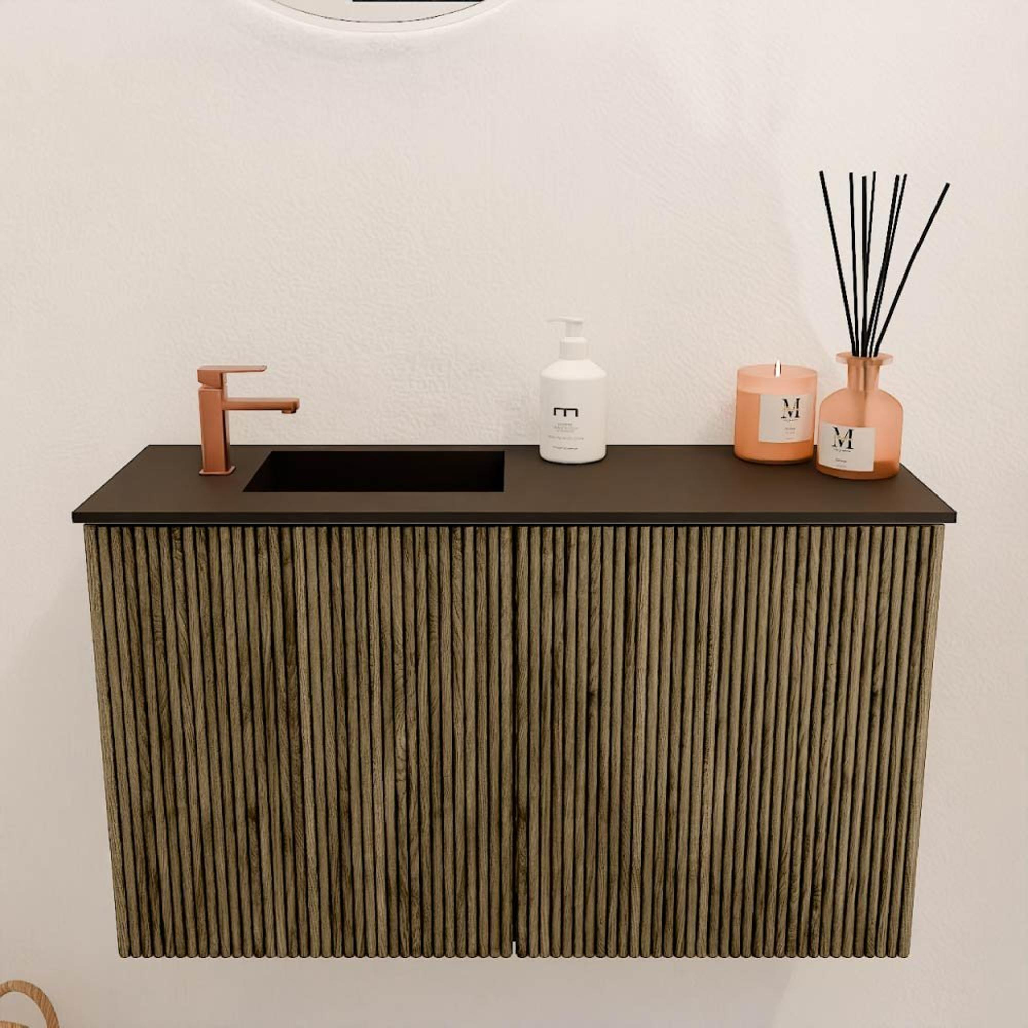 La couleur chaude Dusk du meuble combinée au plan de vasque Urban donne à votre salle de bains un aspect intemporel et naturel. Le chêne apporte une atmosphère luxueuse et authentique, tandis que le design épuré de la vasque ajoute une touche moderne. Ce meuble est un véritable accroche-regard qui s'intègre sans effort à divers styles d'intérieur, du classique à l'industriel. Grâce aux tons subtils, vous créez un espace calme et accueillant où vous commencez chaque jour avec plaisir.