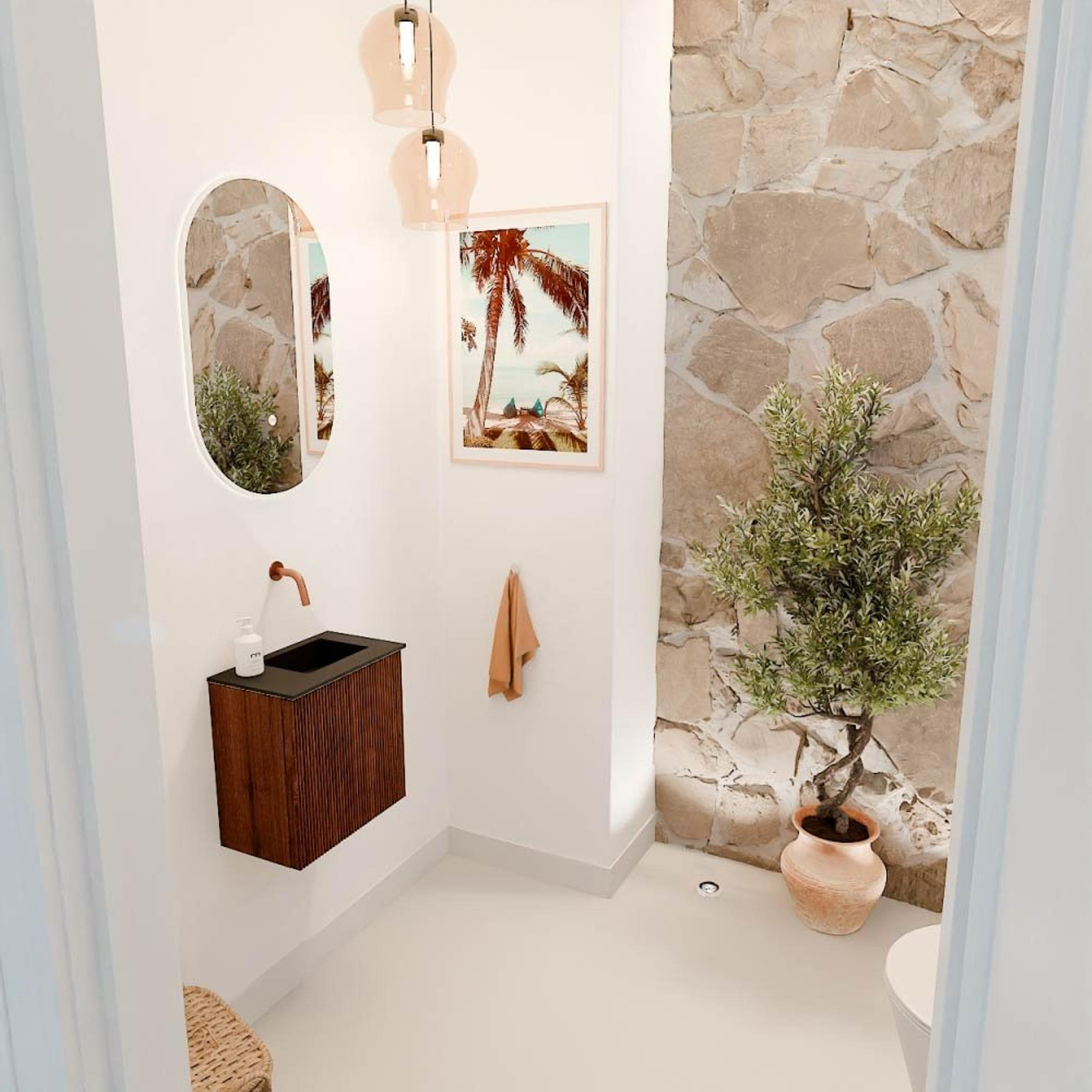 Mondiaz JOYA 40cm meuble de salle de bains WC - couleur Ruby - Vasque FAYE position Droite Sans trou de robinet couleur Urban.