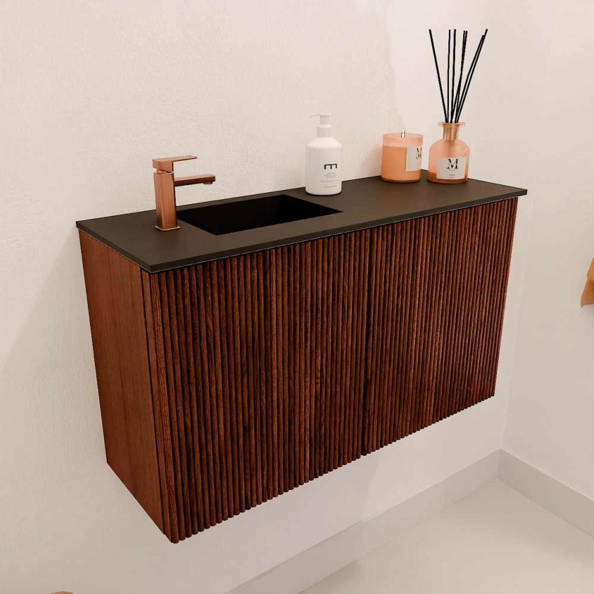 Mondiaz JOYA 70cm meuble de salle de bains WC - couleur Ruby - Vasque FAYE position Gauche 1 trou de robinet couleur Urban