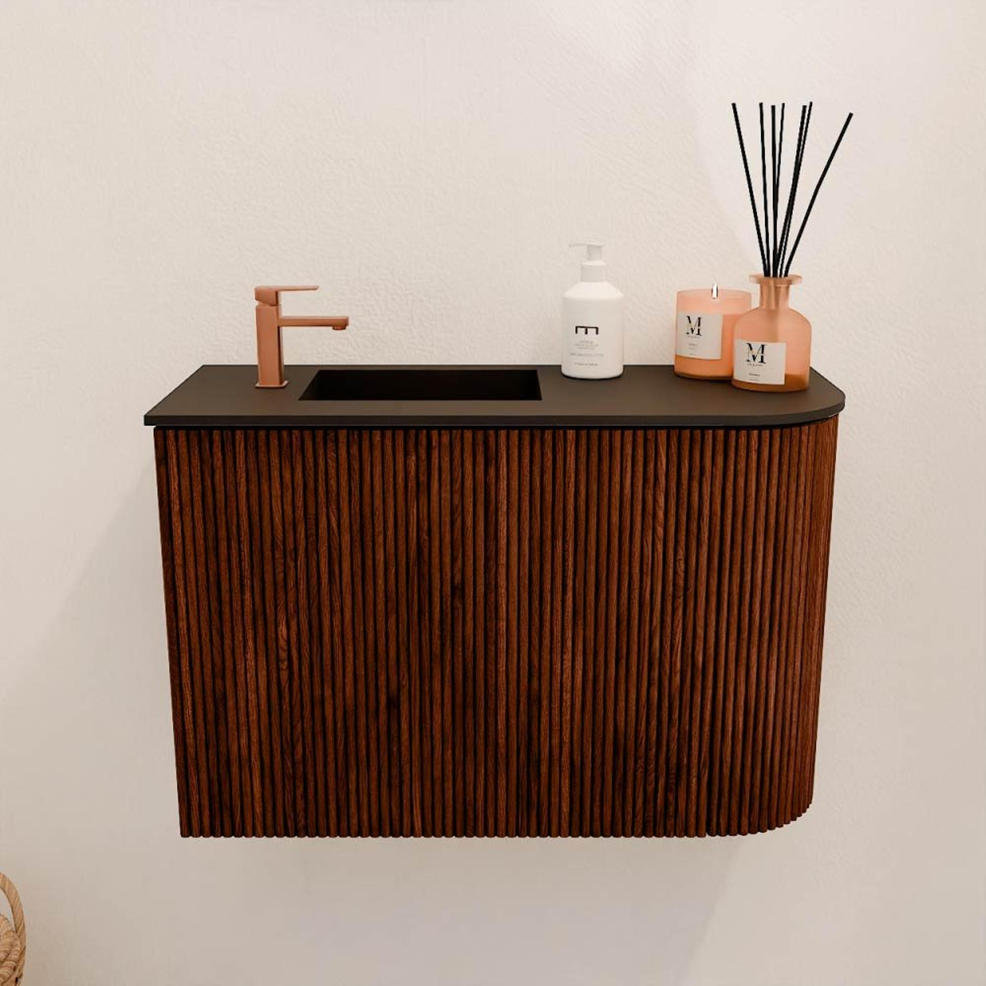Mondiaz JOYA 61.6cm meuble de salle de bains - arrondi droit couleur Ruby - Vasque FAYE position Gauche 1 trou de robinet couleur Urban.