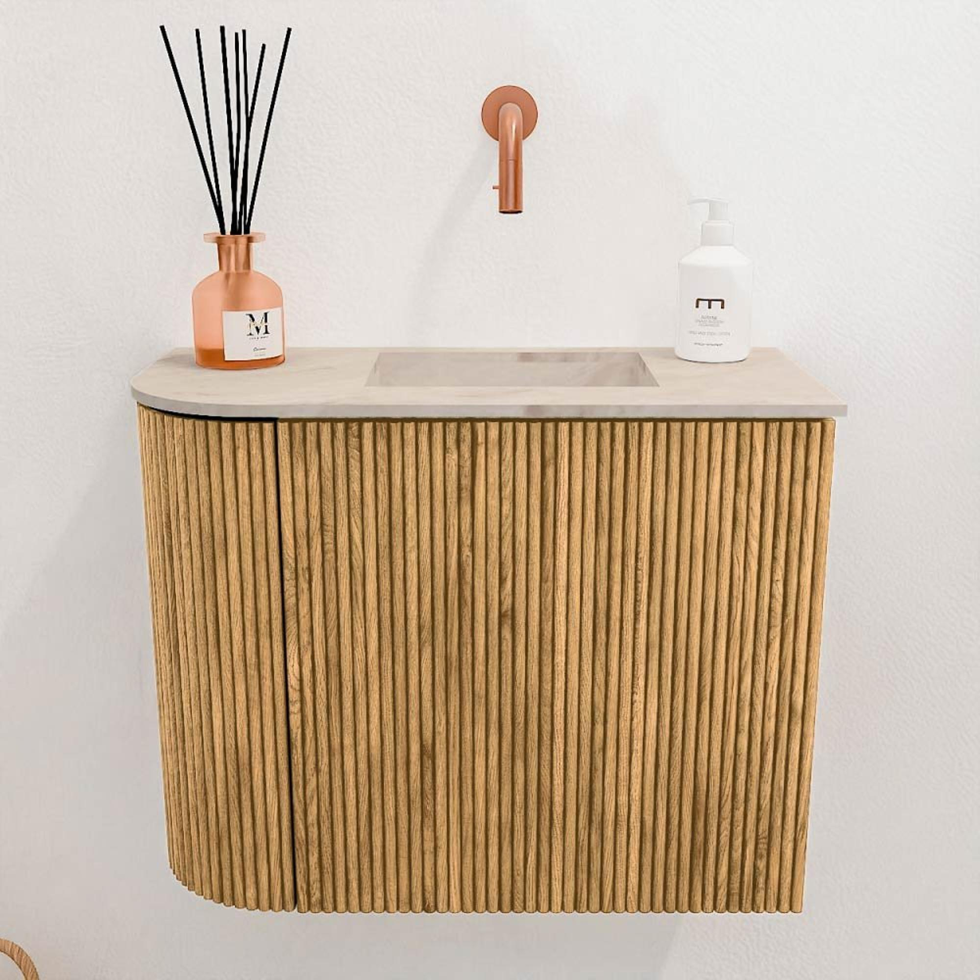 Mondiaz JOYA-DLUX Meuble de salle de bains 51,6cm - arrondi gauche couleur Chêne - Vasque FAYE position Droite Sans trou de robinet couleur Frappe