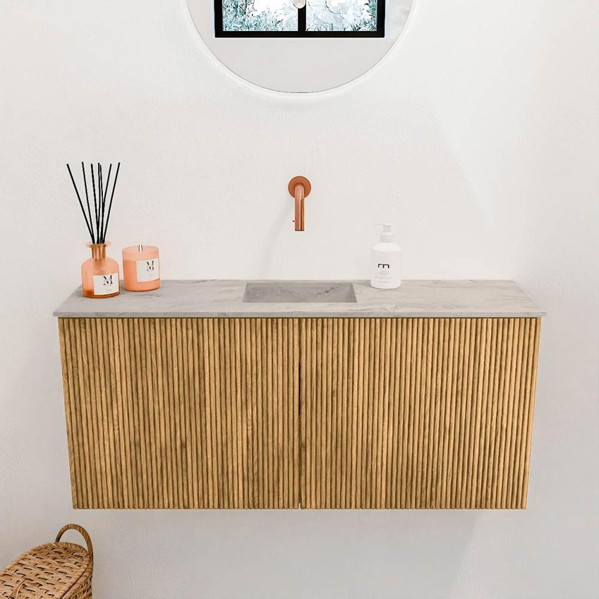 Mondiaz JOYA-DLUX 90cm meuble de salle de bains - couleur Oak - Vasque FAYE position Milieu Sans trou de robinet couleur Glace.