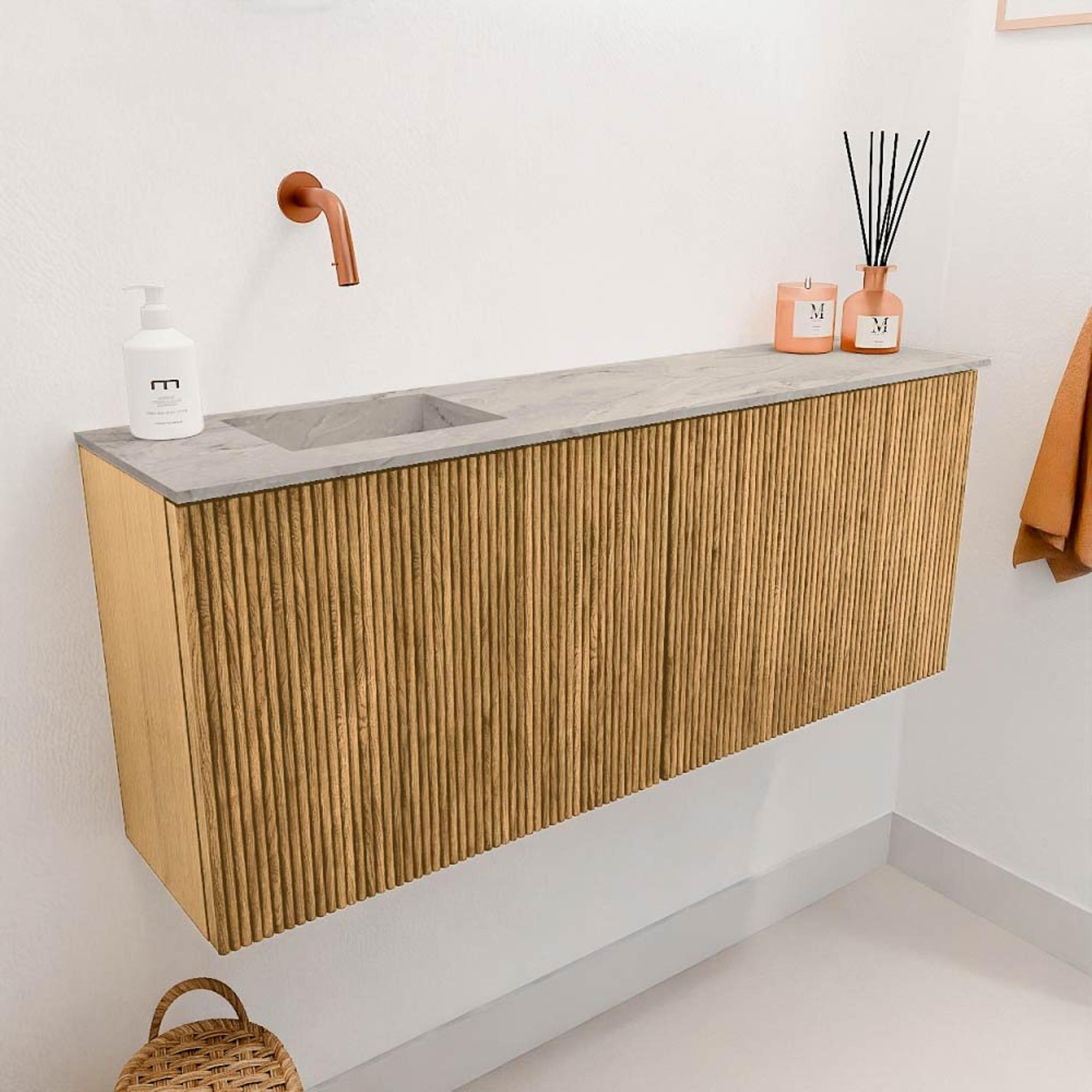 Mondiaz JOYA-DLUX 100cm meuble de toilette - couleur Chêne - Vasque FAYE position Gauche Sans trou de robinet couleur Glace