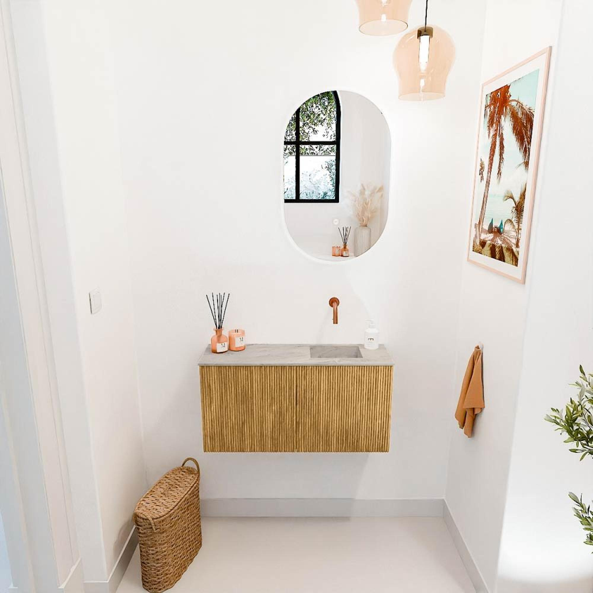 Mondiaz JOYA-DLUX Meuble de salle de bains 80cm - couleur Oak - Vasque FAYE position Droite Sans trou de robinet couleur Glace