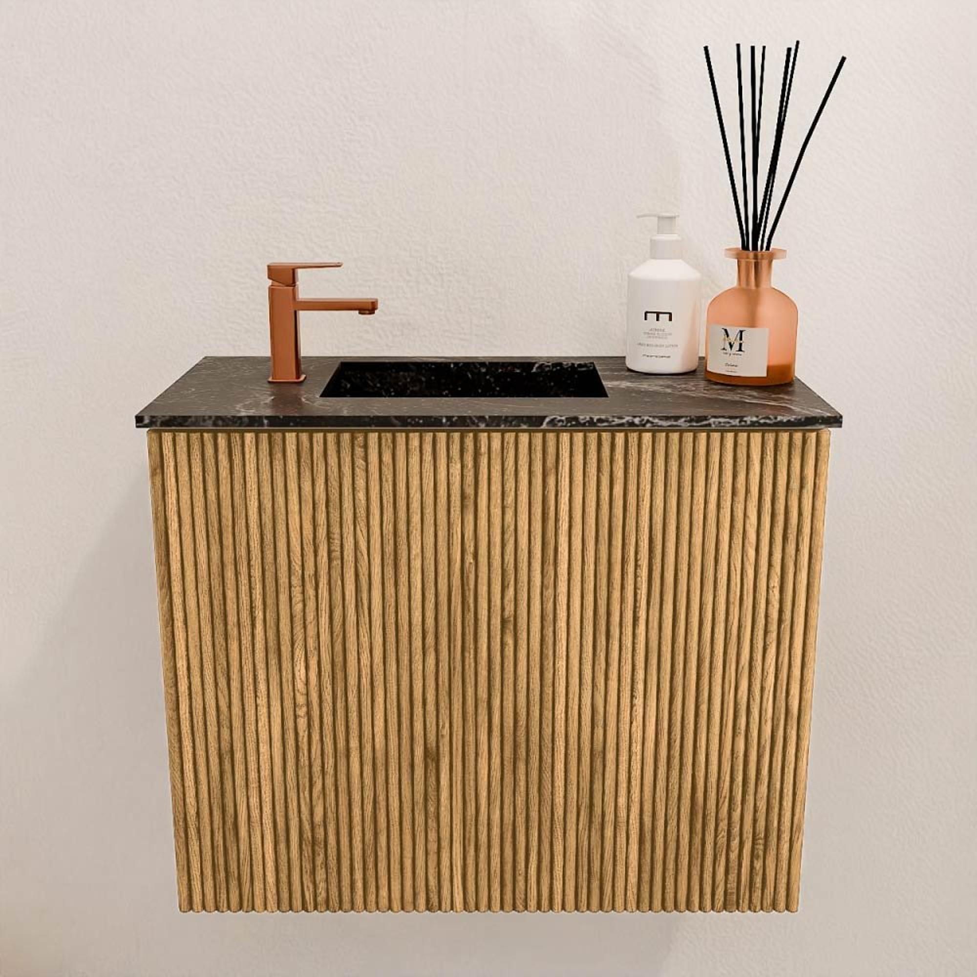 Mondiaz JOYA-DLUX Meuble de salle de bains 50cm - couleur Chêne - Vasque FAYE position Gauche 1 trou de robinet couleur Lava