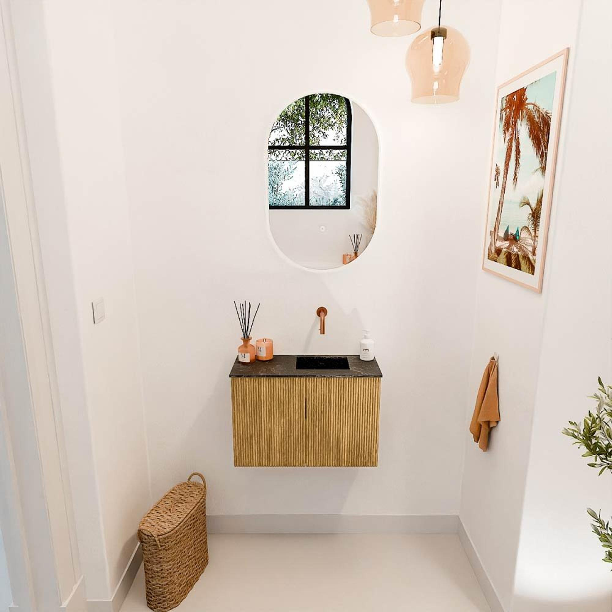 Mondiaz JOYA-DLUX 60cm meuble de salle de bains - couleur Oak - Vasque FAYE position Droite Sans trou de robinet couleur Lava