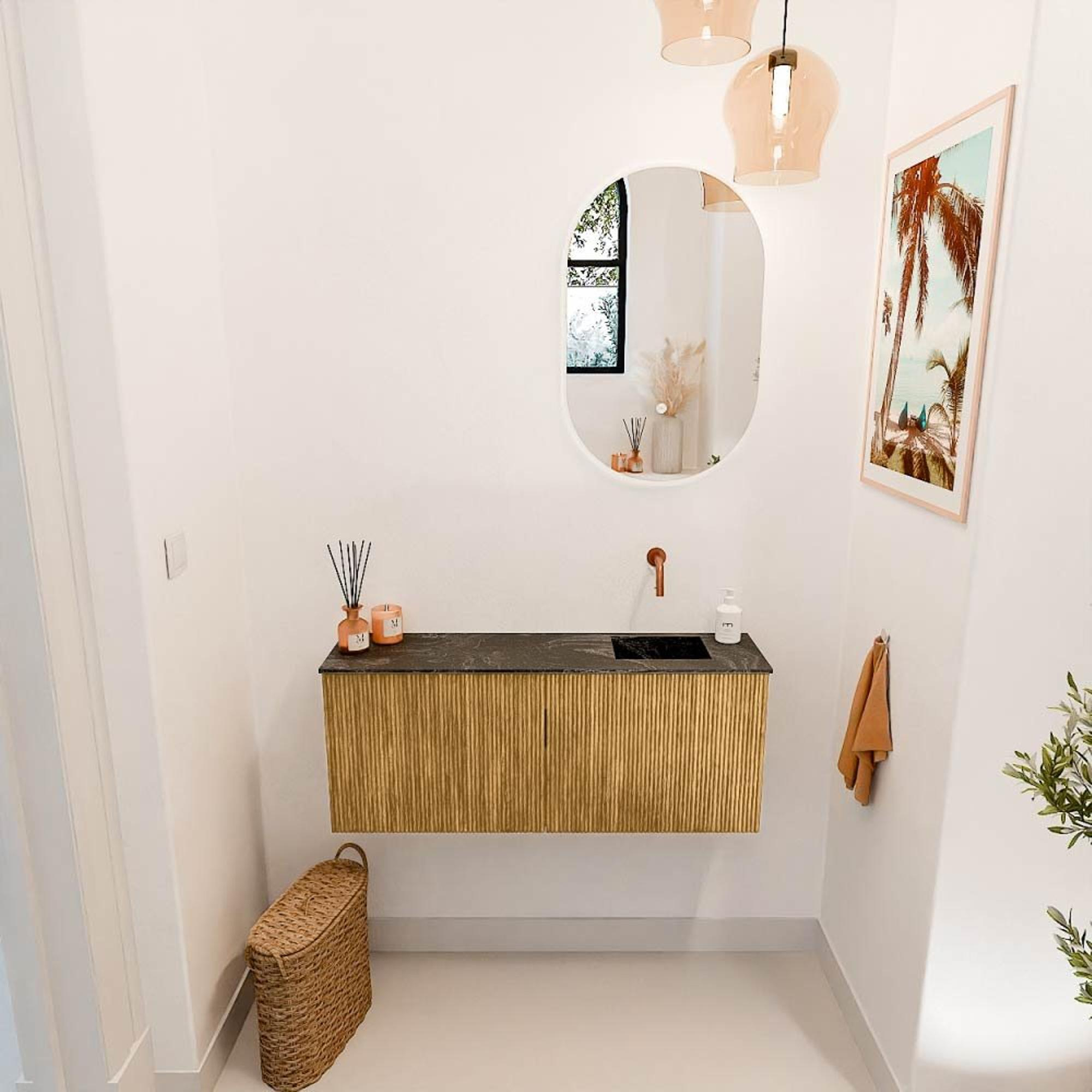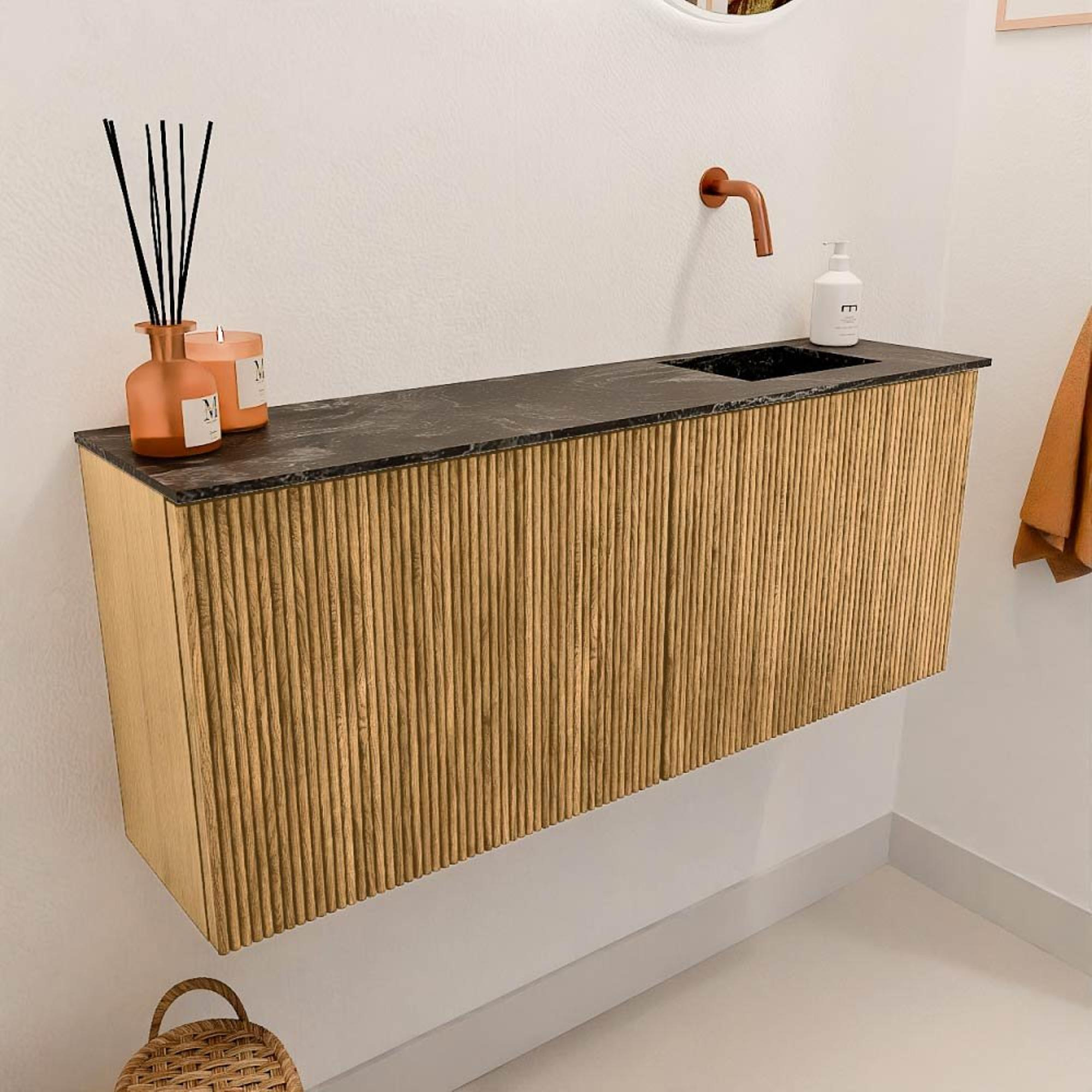 Mondiaz JOYA-DLUX 100cm meuble de salle de bains - couleur Oak - Vasque FAYE position Droite Sans trou de robinet couleur Lava.