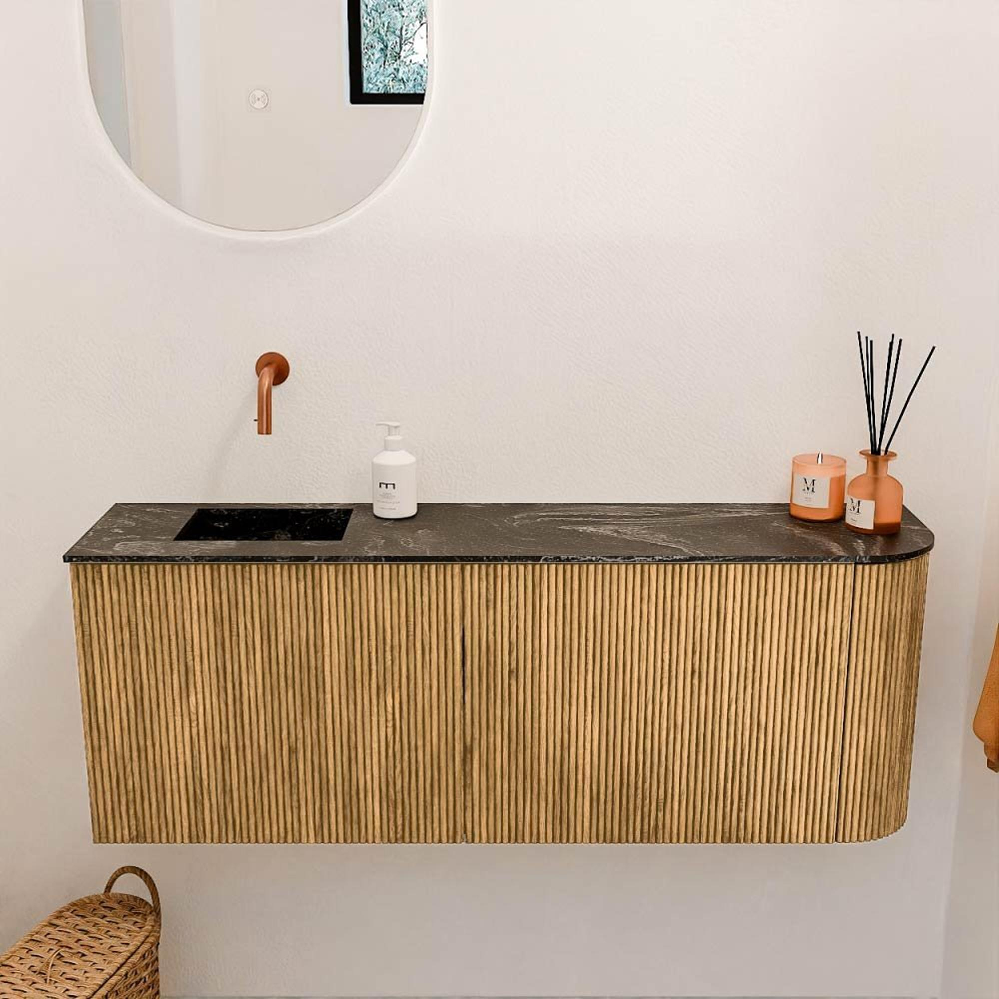 Mondiaz JOYA-DLUX Meuble de salle de bains - 111,6cm - arrondi droit couleur Chêne - Vasque FAYE position Gauche Sans trou de robinet couleur Lava