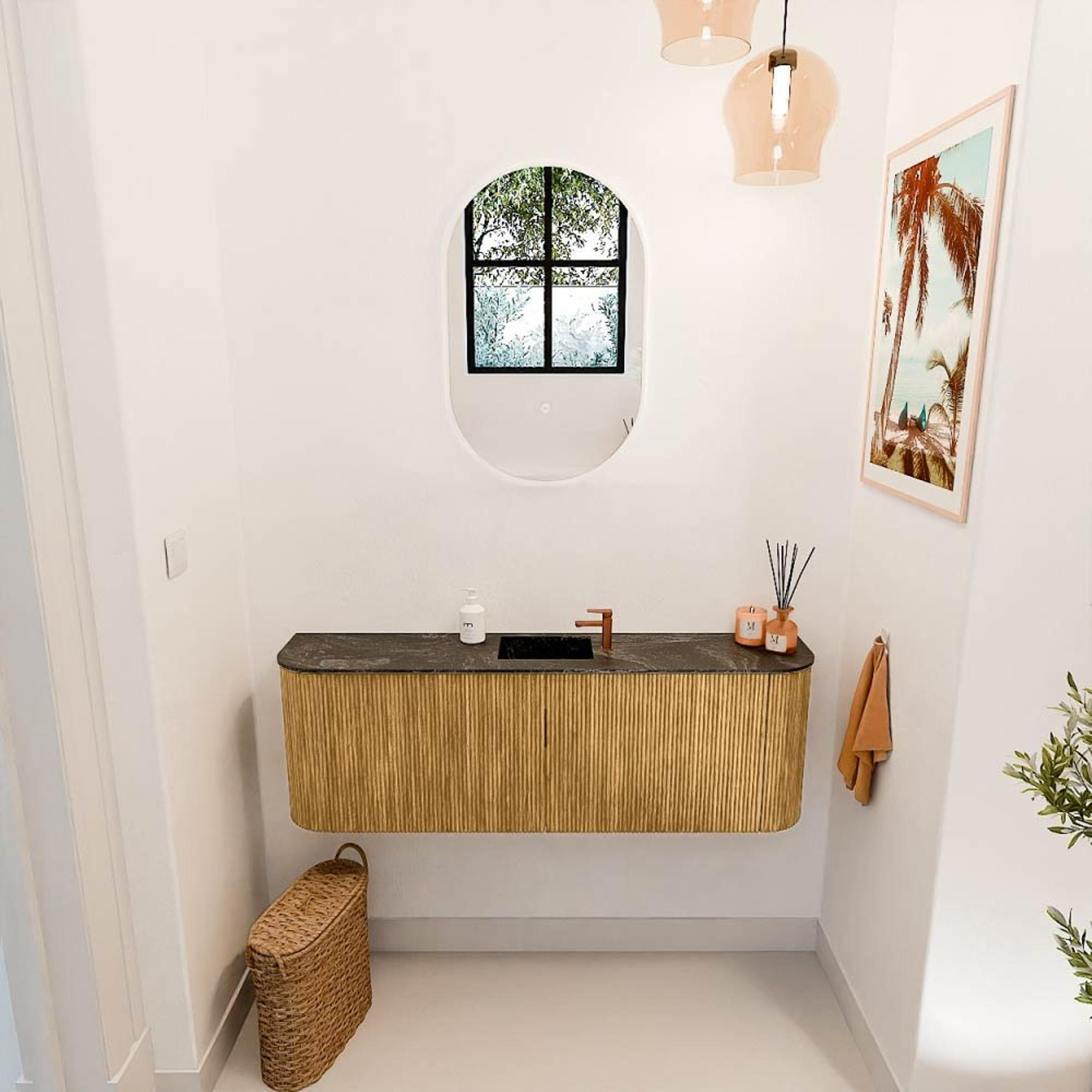 Mondiaz JOYA-DLUX Meuble de salle de bains 123,2cm - arrondis gauche et droite couleur Chêne - Vasque FAYE position Milieu 1 trou de robinet couleur Lava