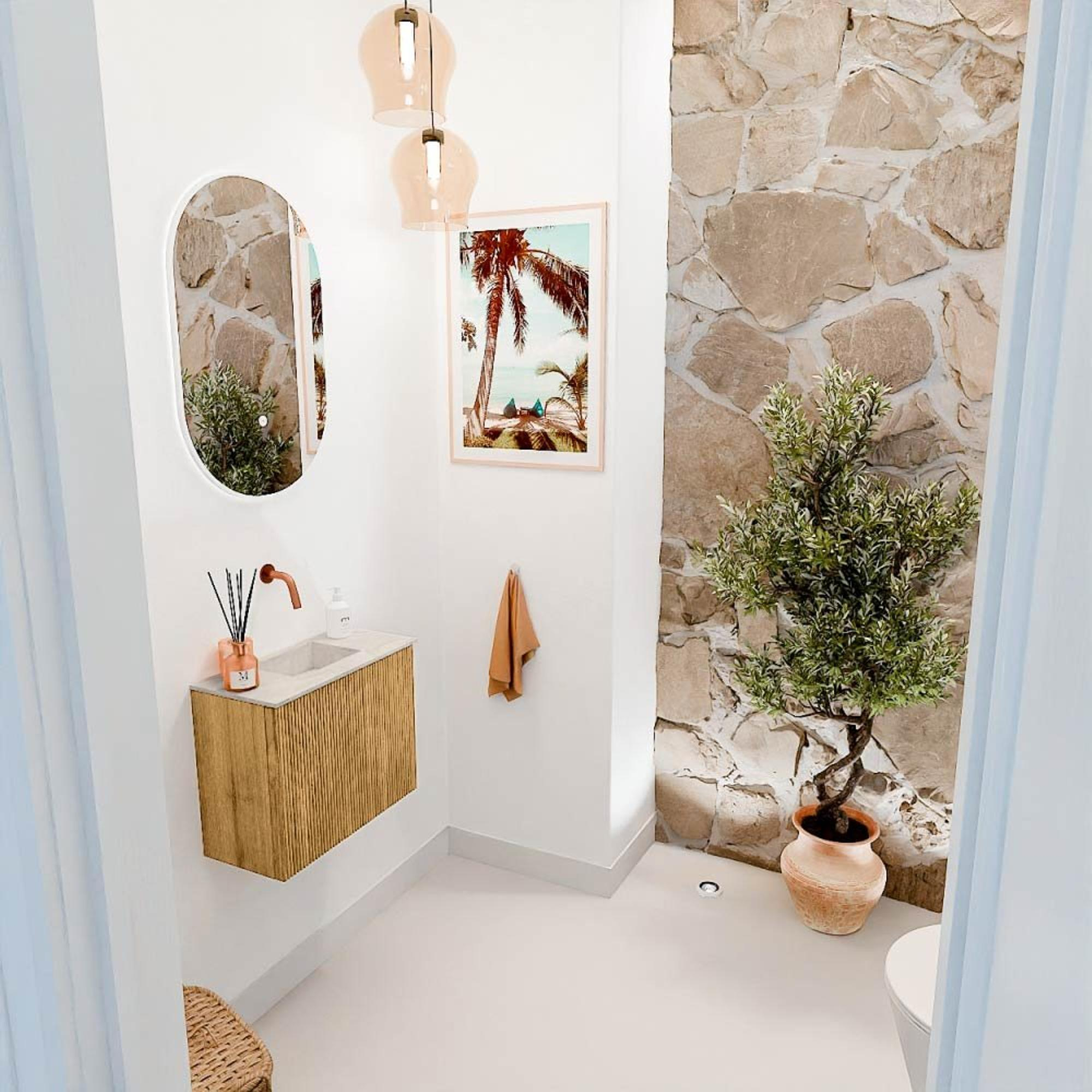 Mondiaz JOYA-DLUX 50cm meuble de toilette - couleur Chêne - Vasque FAYE position Milieu Sans trou de robinet couleur Ostra.