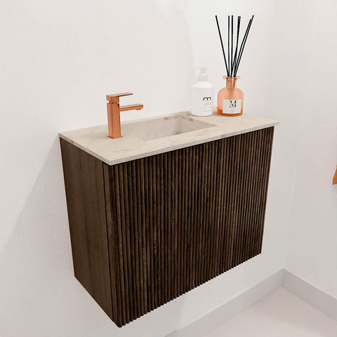 Mondiaz JOYA-DLUX Meuble de salle de bains 50cm - couleur Walnut - Vasque FAYE position Gauche 1 trou de robinet couleur Frappe