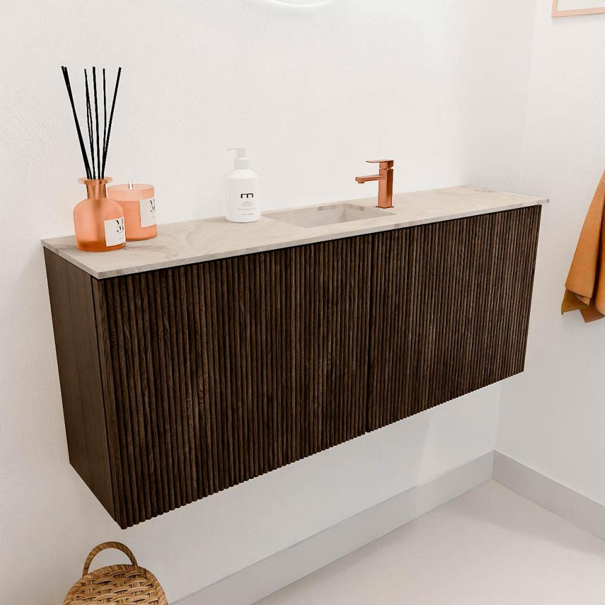 Mondiaz JOYA-DLUX 100cm meuble de salle de bains - couleur Walnut - Vasque FAYE position Milieu 1 trou de robinet couleur Frappe.