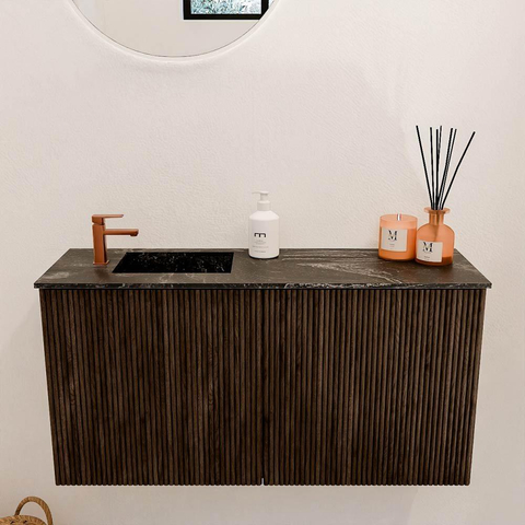 Mondiaz JOYA-DLUX Meuble de salle de bains 80cm - couleur Walnut - Vasque FAYE position Gauche 1 trou de robinet couleur Lava