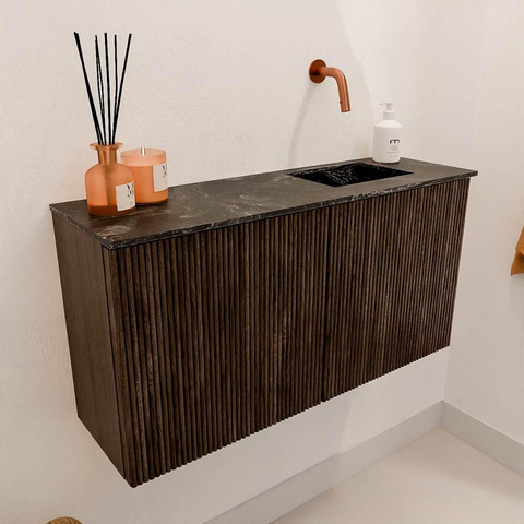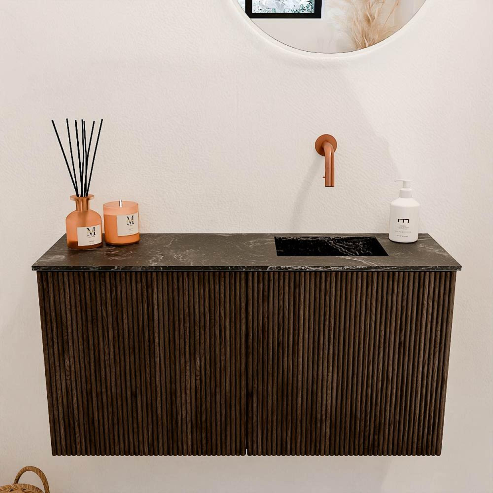 Mondiaz JOYA-DLUX 80cm meuble de salle de bains - couleur Walnut - Vasque FAYE position Droite Sans trou de robinet couleur Lava.