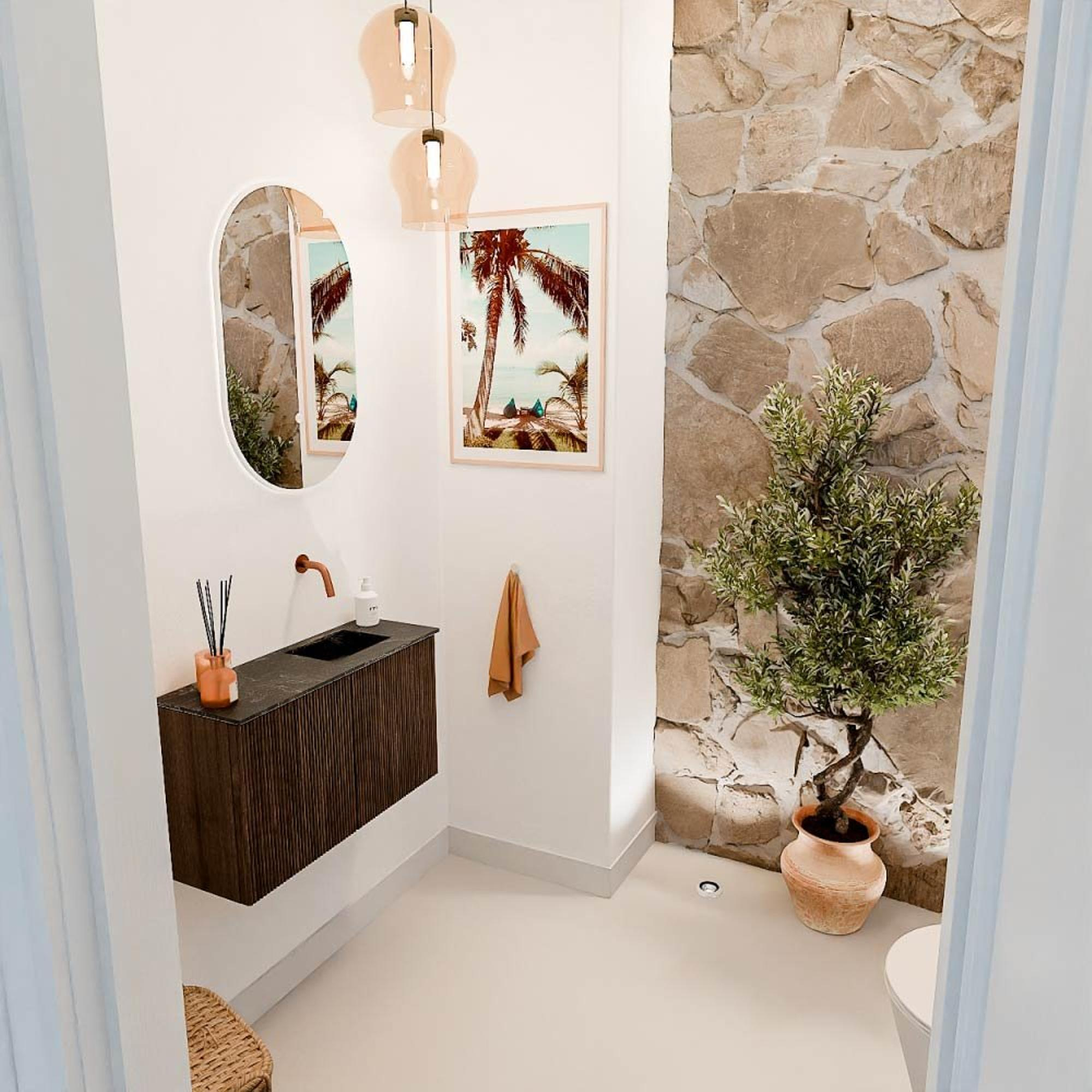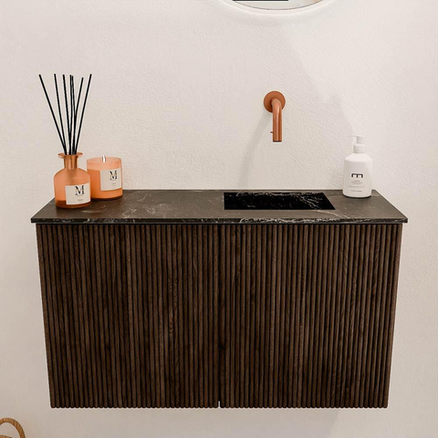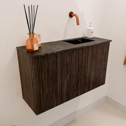 Mondiaz JOYA-DLUX 70cm meuble de salle de bains - couleur Walnut - Vasque FAYE position Droite Sans trou de robinet couleur Lava.