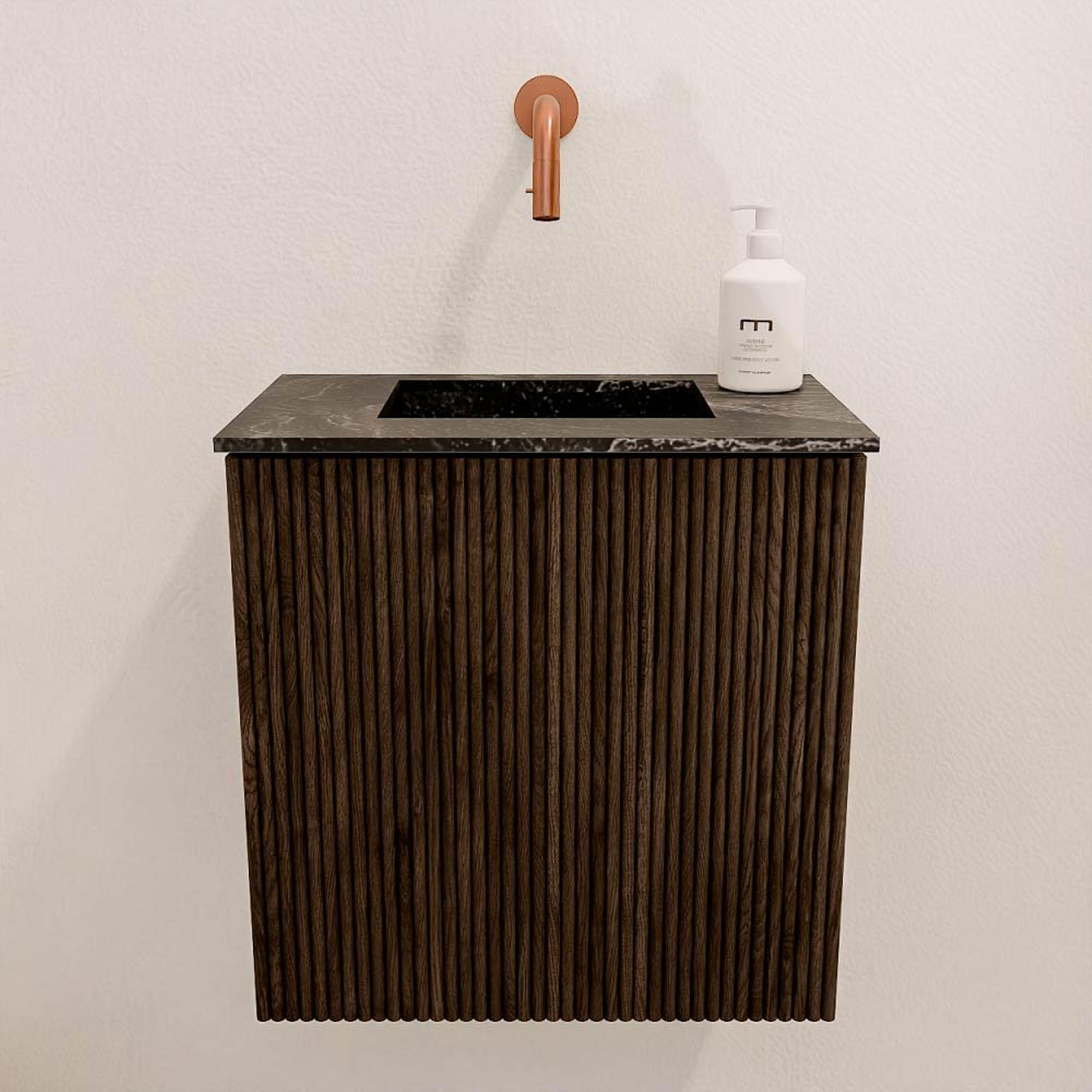 Avec ce meuble compact et élégant, vous donnez à votre espace toilette une ambiance chaleureuse et naturelle. Le meuble combine la couleur riche et profonde de la noix avec un design moderne et épuré qui s’intègre parfaitement dans des salles de bains classiques comme contemporaines. Grâce aux dimensions intelligentes de 40 cm de largeur, il est idéal pour les petits espaces où vous ne voulez pas sacrifier le confort ni l’esthétique. La vasque couleur Lava sans trou de robinet offre un look calme et minimaliste, facile à assortir avec votre robinetterie et accessoires existants. Ce meuble transforme vos toilettes en un lieu où vous aimez vous détendre, sans compromettre la fonctionnalité ni le style.