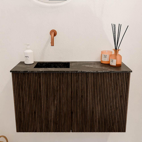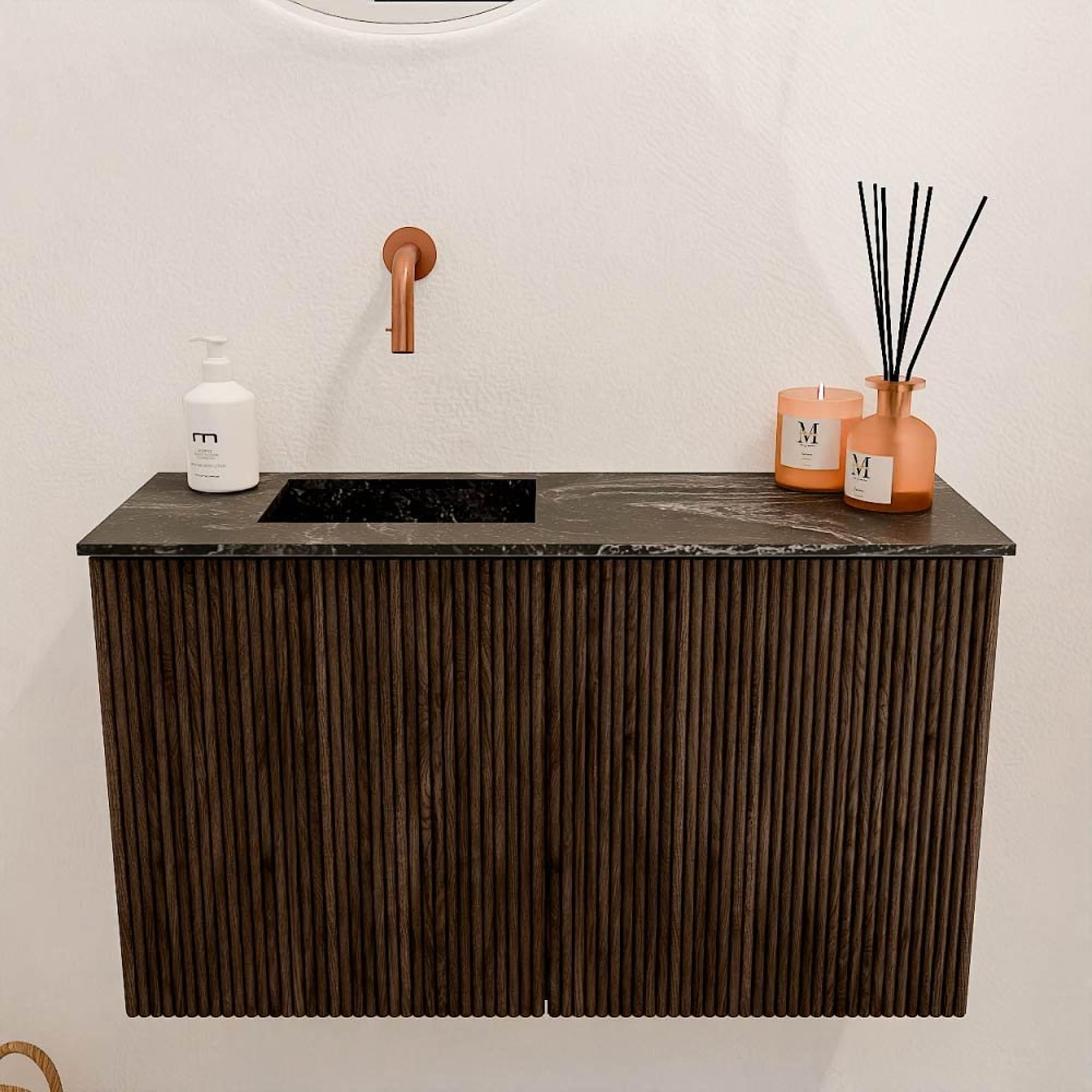 Mondiaz JOYA-DLUX 70cm meuble de salle de bains - couleur Walnut - Vasque FAYE position Gauche Sans trou de robinet couleur Lava.