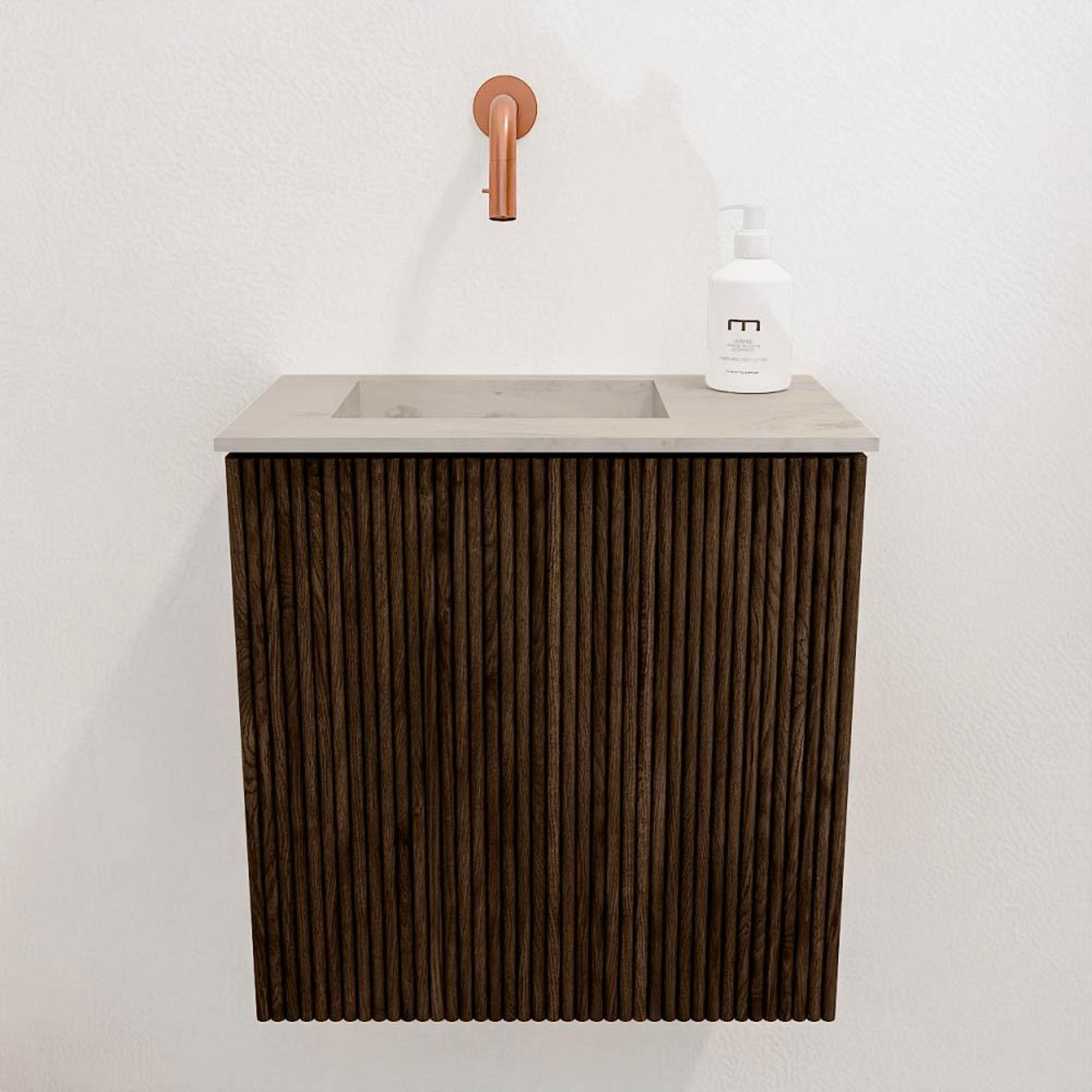 Mondiaz JOYA-DLUX Meuble de toilette 40cm - couleur Walnut - Lavabo FAYE position Gauche Sans trou de robinet couleur Opalo.