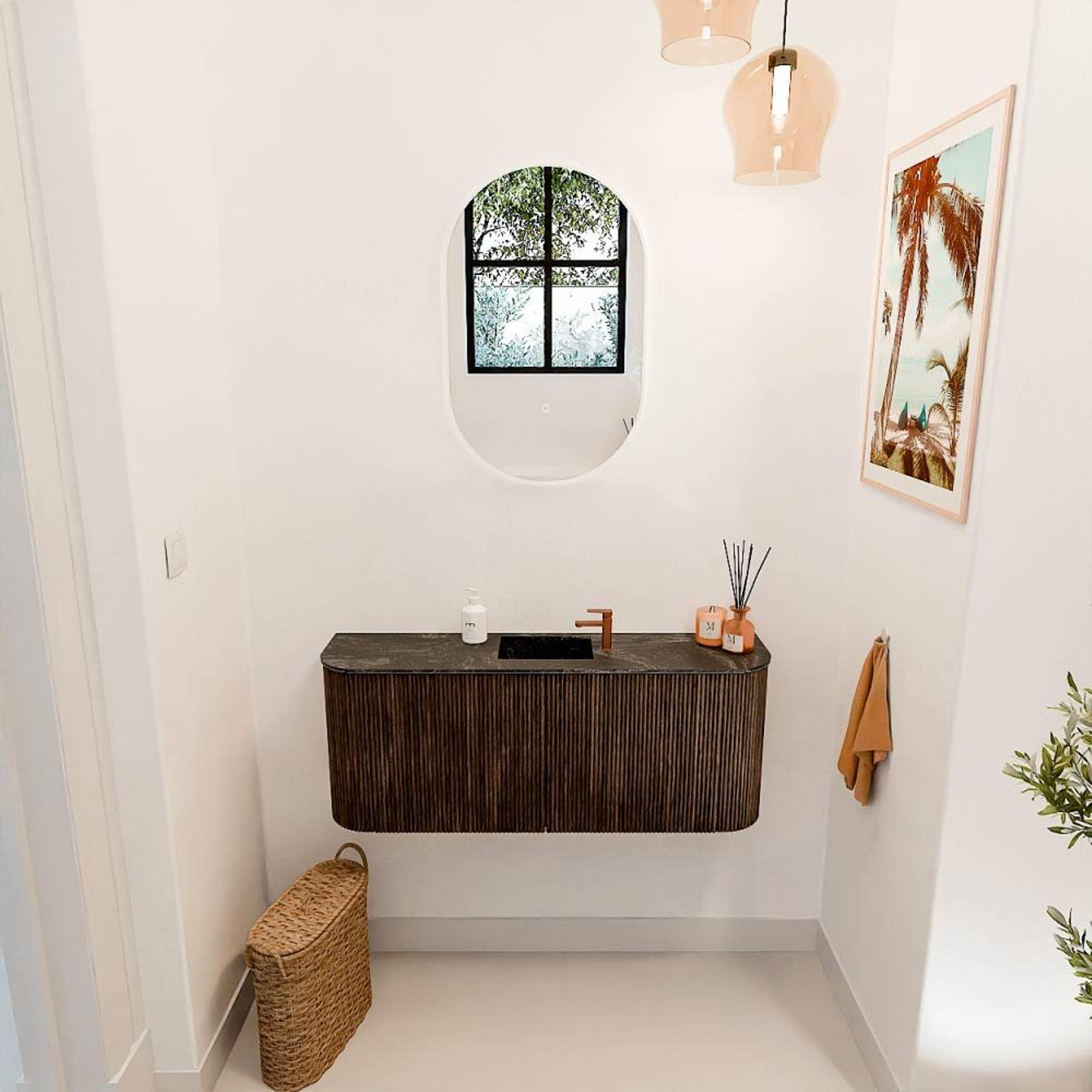 Mondiaz JOYA-DLUX Meuble de salle de bains 103,2cm - arrondis gauche et droite couleur Noyer - Vasque FAYE position Milieu 1 trou de robinet couleur Lava.