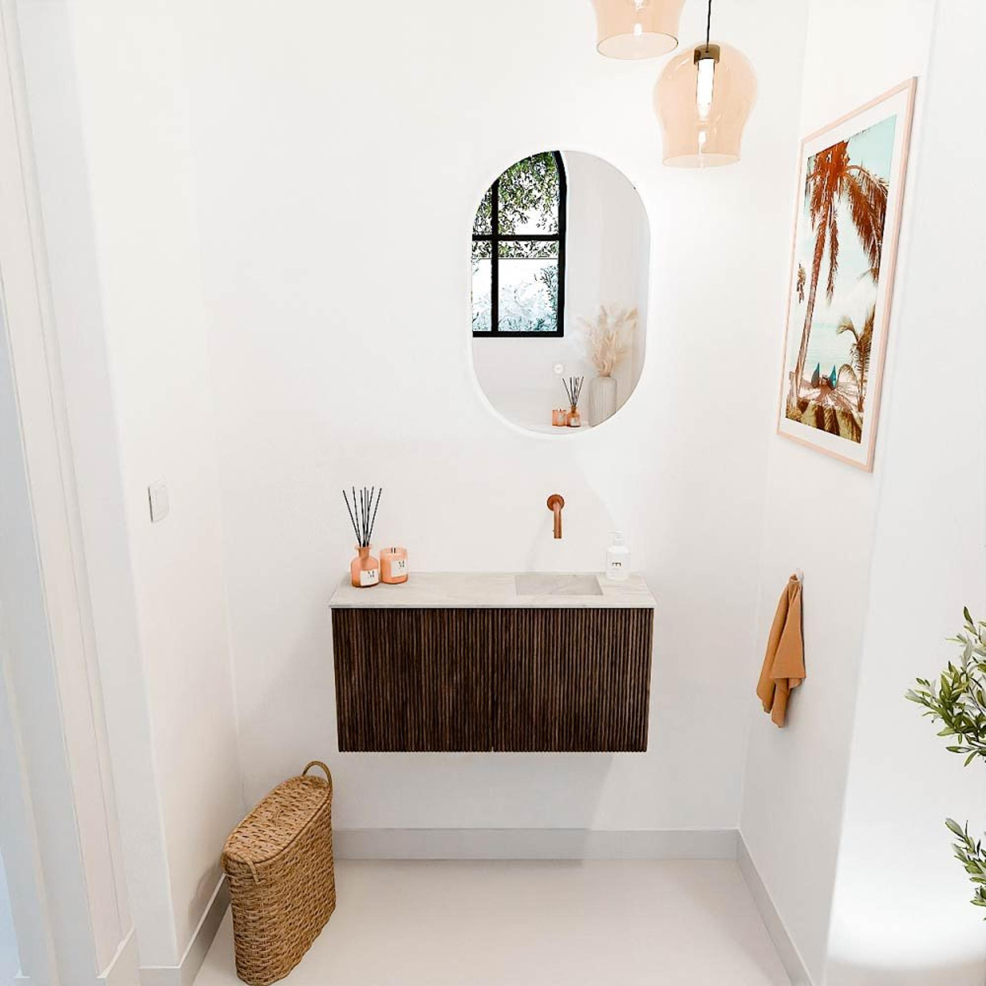 Mondiaz JOYA-DLUX Meuble de toilette 80cm - couleur Walnut - Vasque FAYE position Droite Sans trou de robinet couleur Ostra.