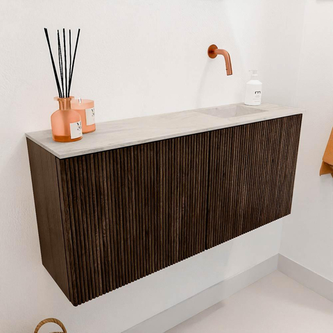 Mondiaz JOYA-DLUX 90cm meuble de toilette - couleur Walnut - Lavabo FAYE position Droite Sans trou de robinet couleur Ostra.