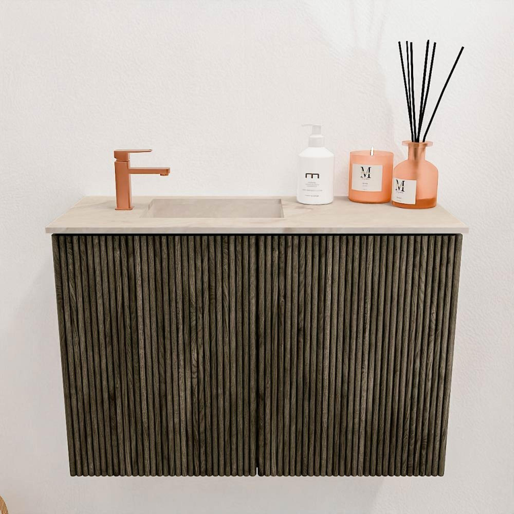 En plus de son bel aspect, ce meuble est également très pratique. La vasque Faye avec un trou de robinet à gauche offre suffisamment d'espace pour effectuer votre routine quotidienne confortablement. Le meuble est conçu pour une fixation murale, ce qui libère le sol et donne une impression d'espace plus grand. L'agencement intelligent offre un espace de rangement pratique, pour que votre salle de bains reste toujours propre et ordonnée. Vous combinez ainsi facilement style et facilité d'utilisation.