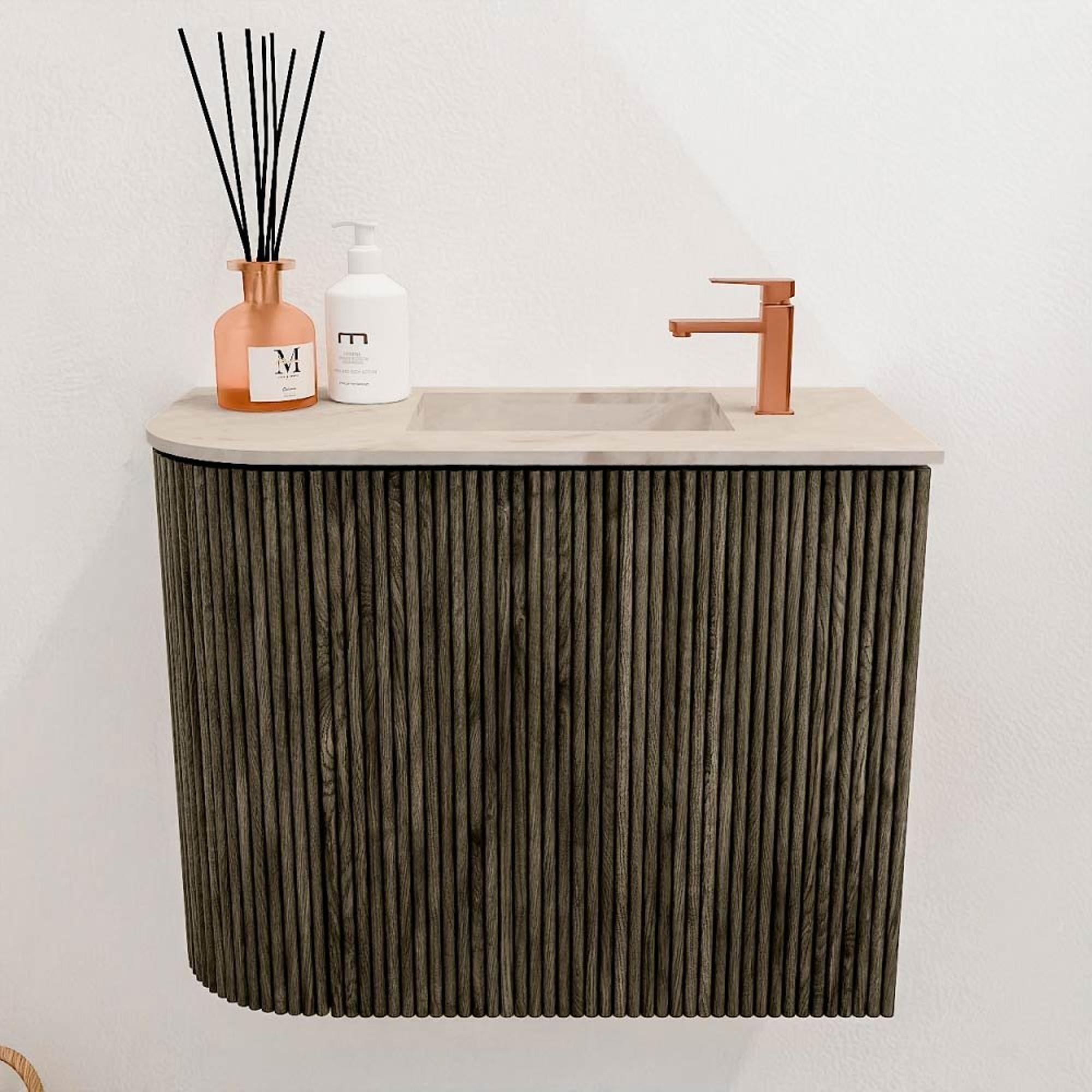 Mondiaz JOYA-DLUX Meuble de salle de bains - 51,6cm - arrondi gauche couleur Shadow - Vasque FAYE position Droite 1 trou de robinet couleur Frappe