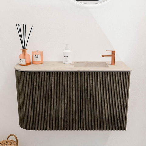 Mondiaz JOYA-DLUX Meuble de salle de bains 71,6cm - arrondi gauche couleur Shadow - Lavabo FAYE position Droite 1 trou de robinet couleur Frappe.