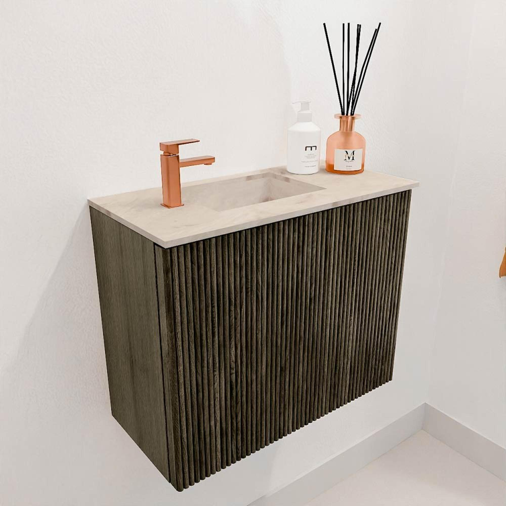 Mondiaz JOYA-DLUX 50cm meuble de salle de bains - couleur Shadow - Vasque FAYE position Gauche 1 trou de robinet couleur Frappe.