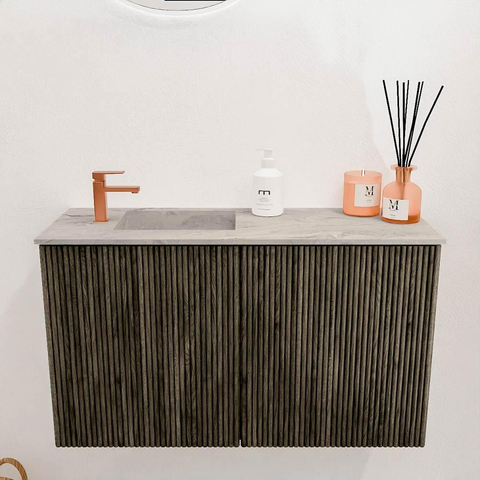 Mondiaz JOYA-DLUX 70cm meuble de salle de bains - couleur Shadow - Vasque FAYE position Gauche 1 trou de robinet couleur Glace.