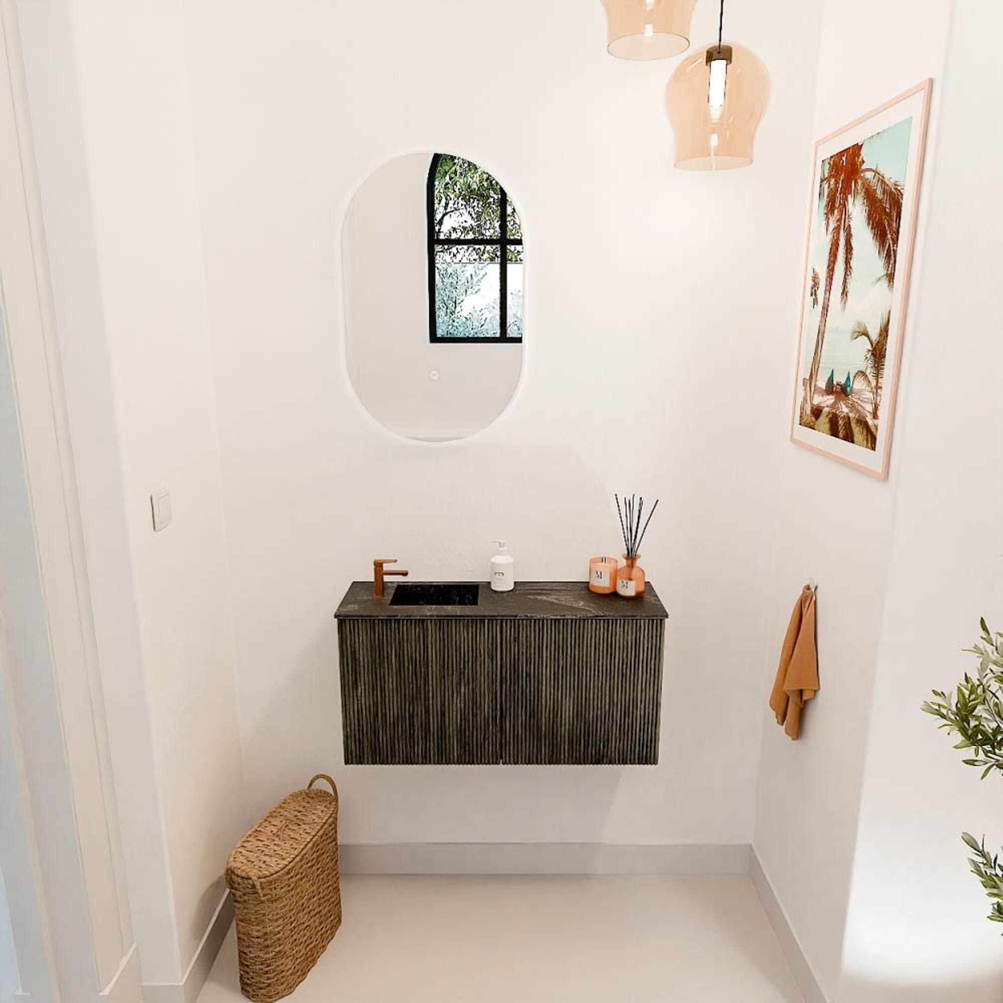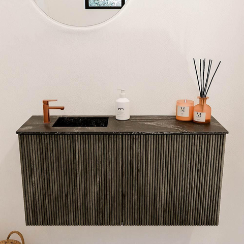Mondiaz JOYA-DLUX 80cm meuble de salle de bains - couleur Shadow - Vasque FAYE position Gauche 1 trou de robinet couleur Lava.