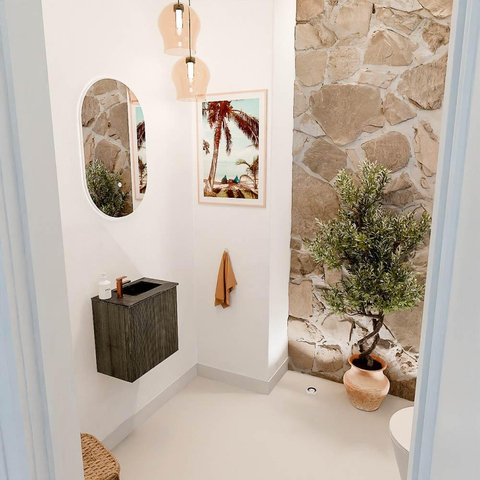 Avec ce meuble compact et élégant, vous donnez une mise à niveau immédiate à vos toilettes. Il combine un aspect naturel avec une fonctionnalité intelligente, rendant votre salle de bains non seulement plus belle, mais aussi plus pratique. Grâce à sa taille subtile de 40 cm de large, le meuble s'adapte parfaitement aux petits espaces, sans sacrifier l'espace de rangement. La teinte chaude et sombre de l'armoire en couleur Shadow crée une ambiance intemporelle, tandis que la vasque en Lava ajoute une touche contemporaine. Le meuble est conçu pour être fixé au mur, ce qui crée un effet d'espace et facilite grandement le nettoyage. Ainsi, vous profitez chaque jour d'un espace toilettes frais, organisé et élégant qui invite à la détente.