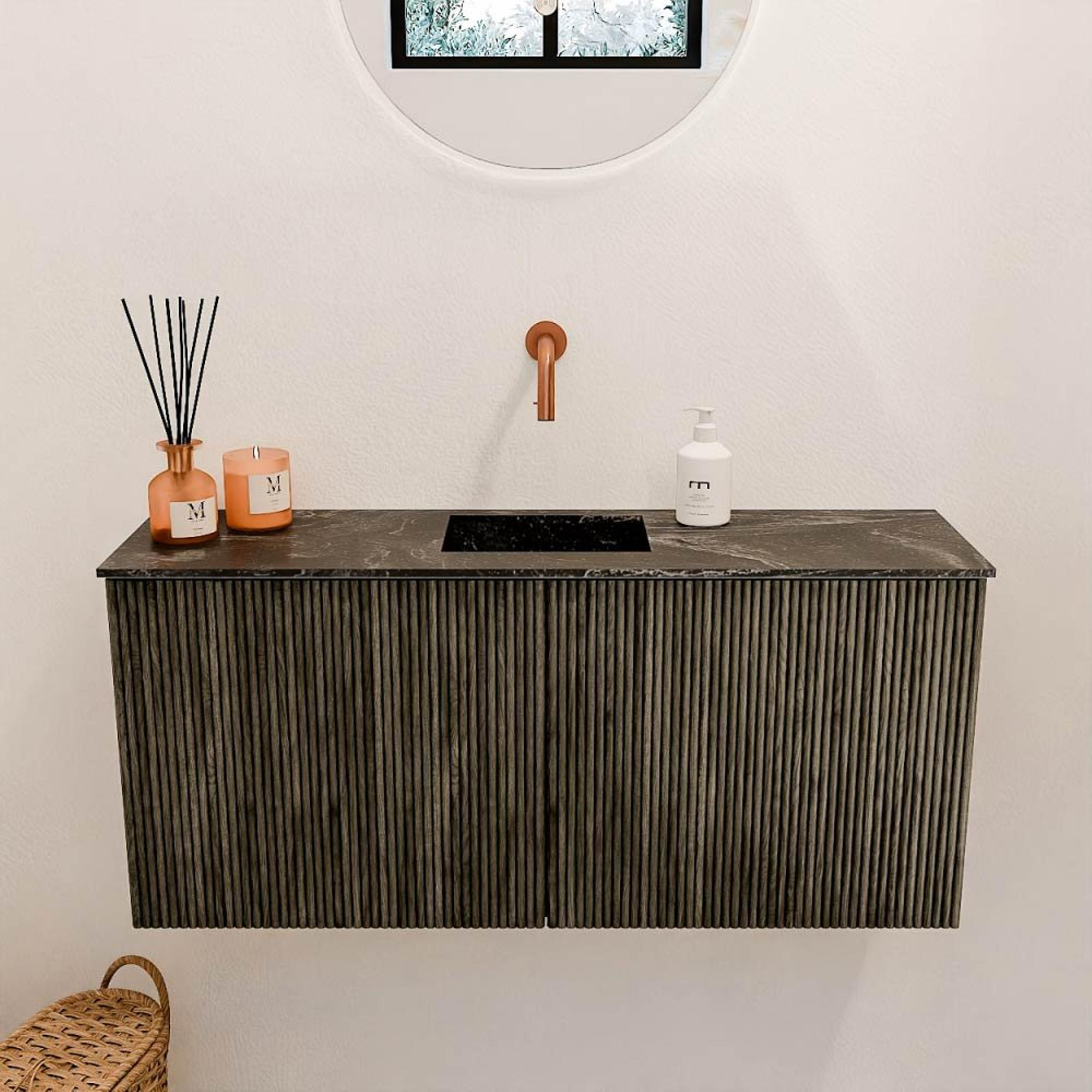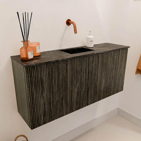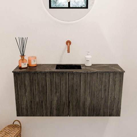 Mondiaz JOYA-DLUX 90cm meuble de salle de bains - couleur Shadow - Vasque FAYE position Milieu Sans trou de robinet couleur Lava.
