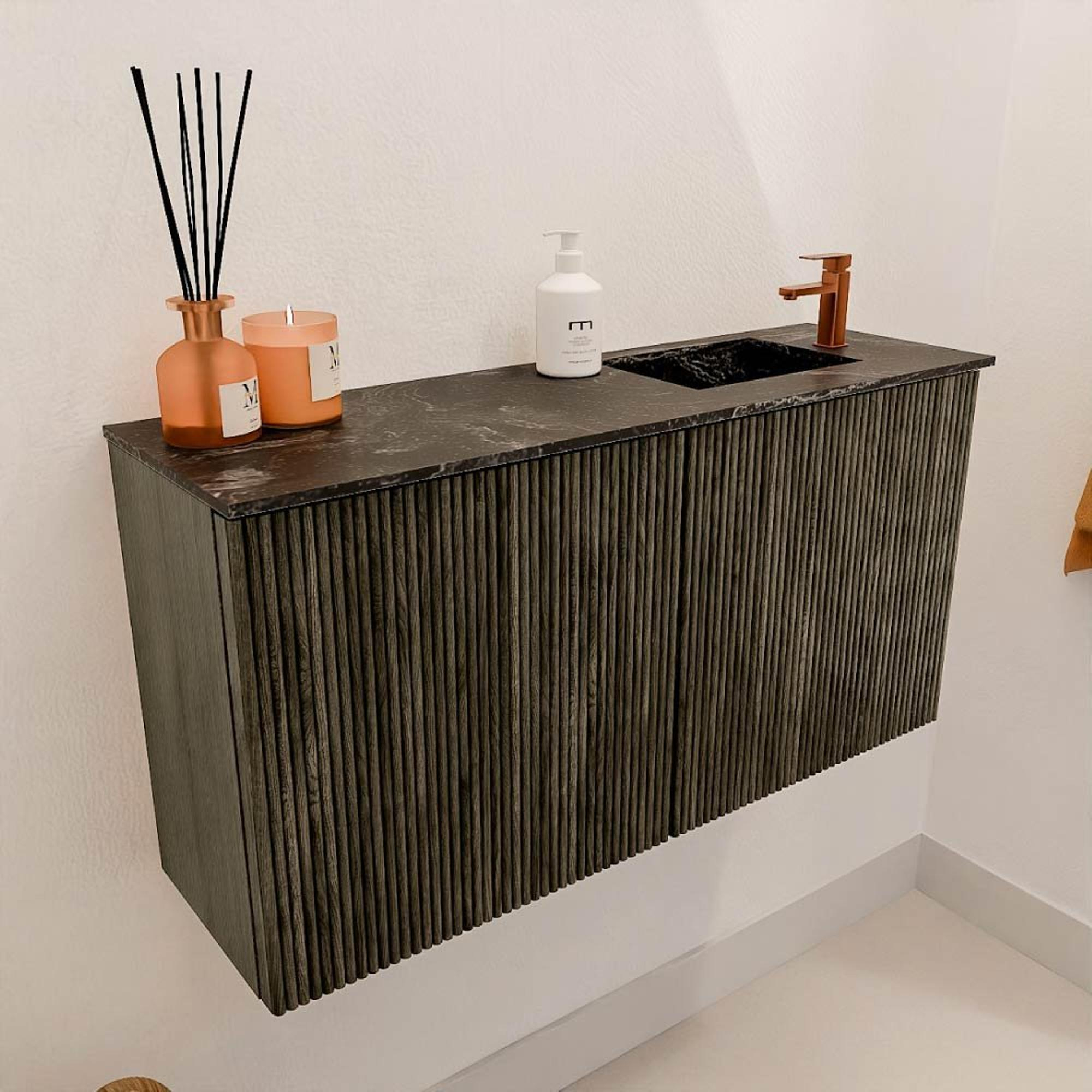 Mondiaz JOYA-DLUX Meuble de salle de bains 80cm - couleur Shadow - Vasque FAYE position Droite 1 trou de robinet couleur Lava