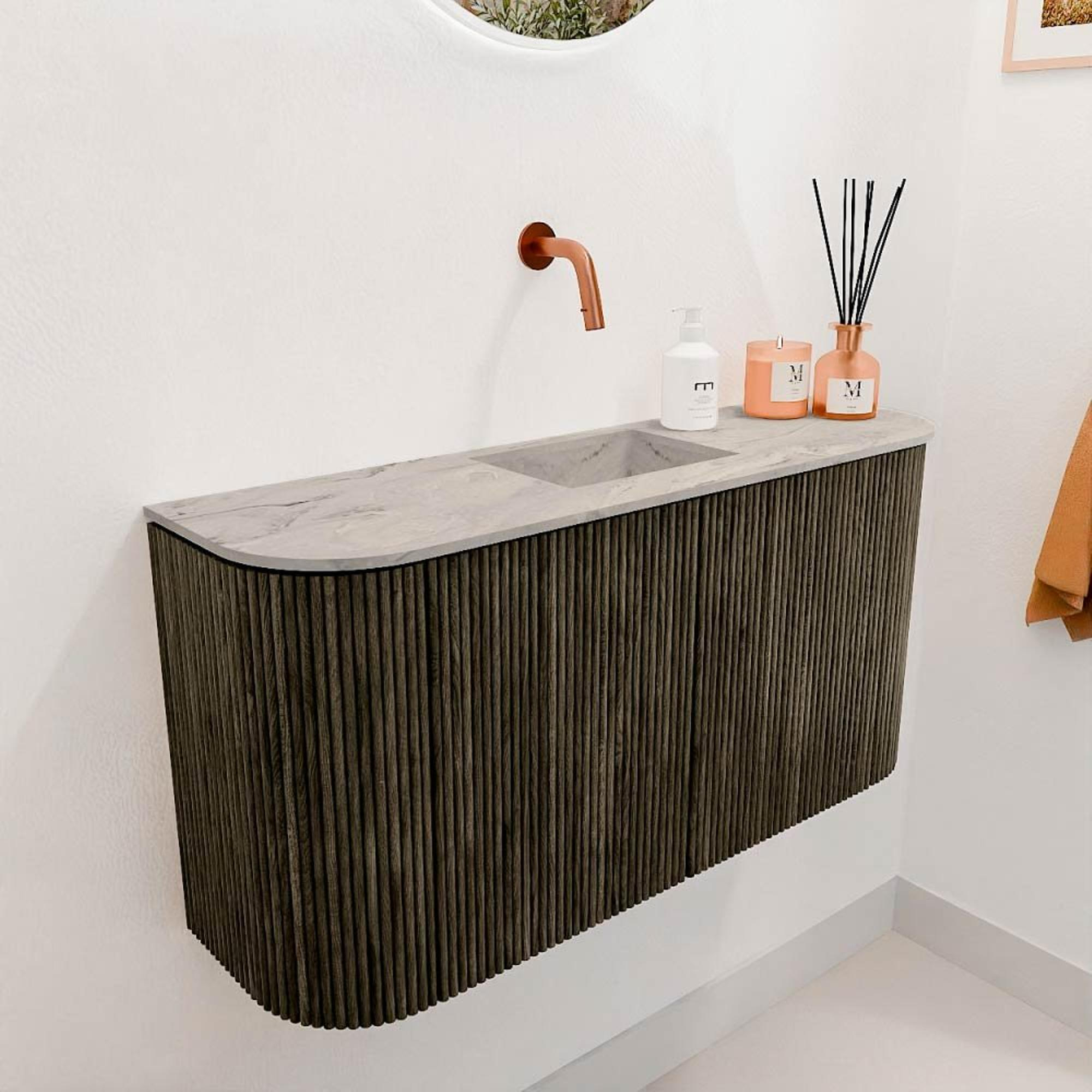 Mondiaz JOYA-DLUX Meuble de salle de bains 83,2 cm - arrondis gauche et droite couleur Shadow - Vasque FAYE position Milieu Sans trou de robinet couleur Glace
