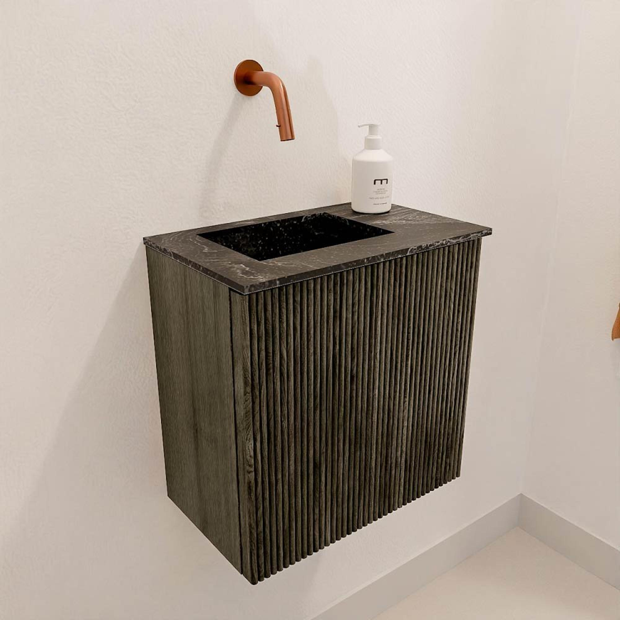 Mondiaz JOYA-DLUX Meuble de salle de bains - 40cm - couleur Shadow - Vasque FAYE position Gauche Sans trou de robinet couleur Lava