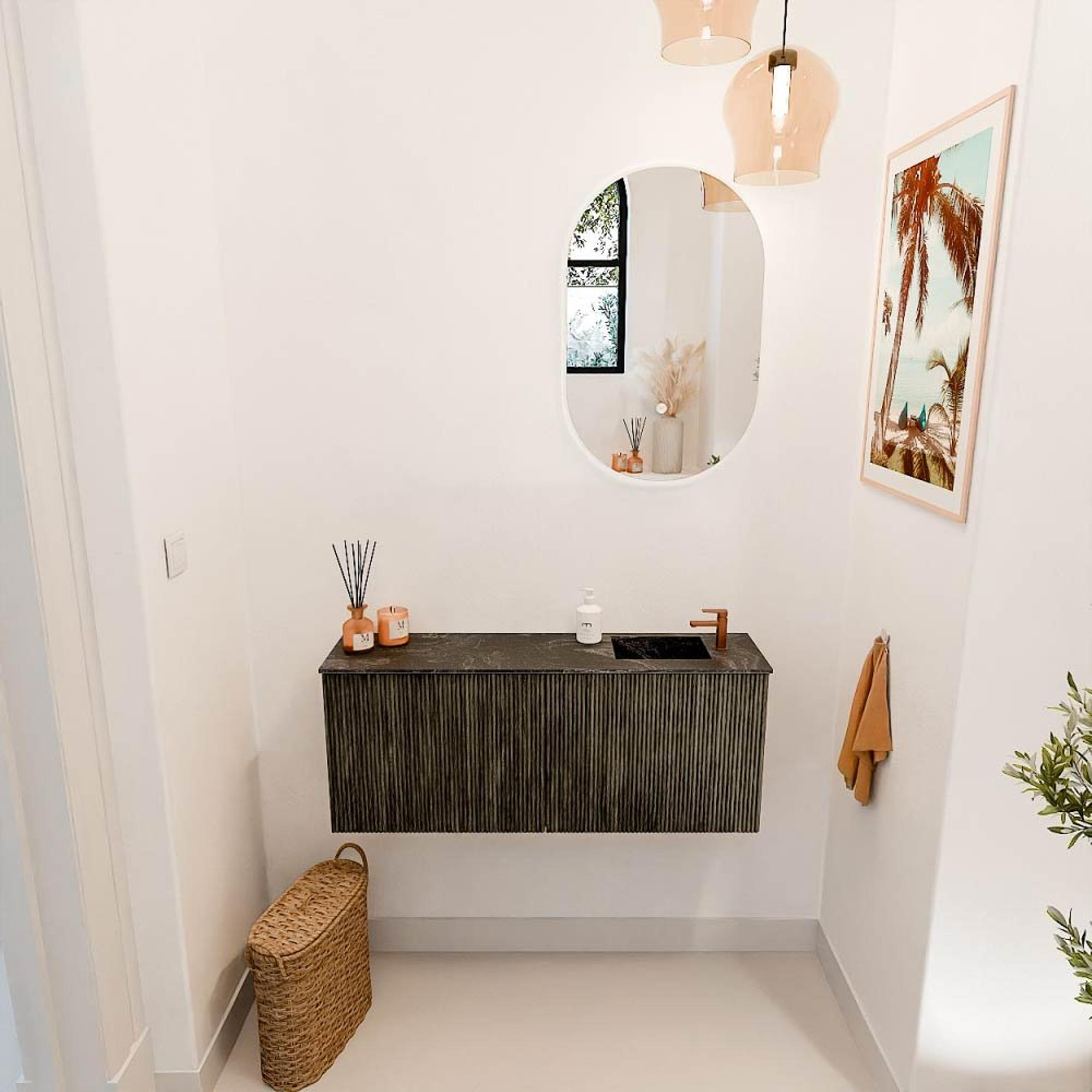 Mondiaz JOYA-DLUX Meuble de salle de bains 100cm - couleur Shadow - Vasque FAYE position Droite 1 trou de robinet couleur Lava.