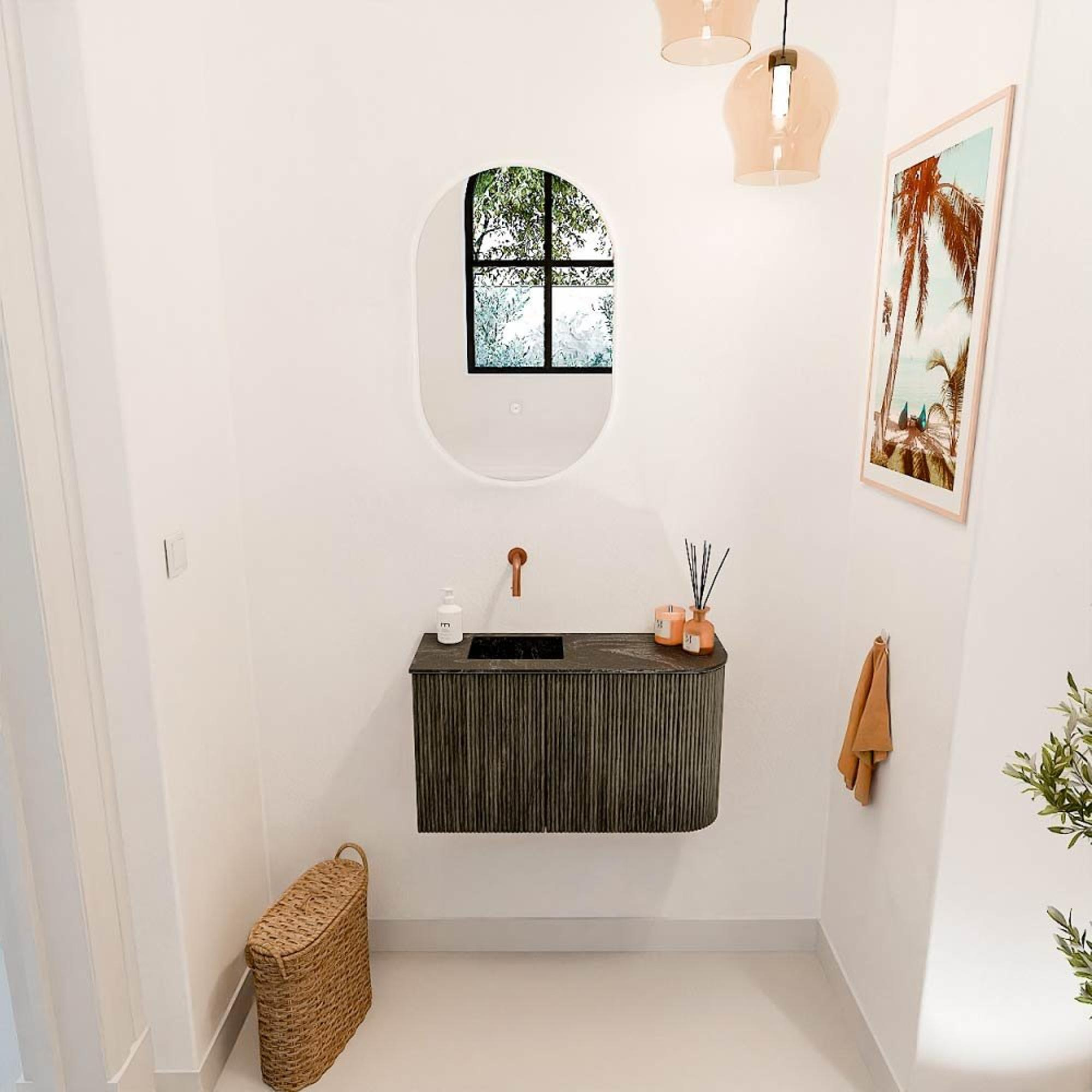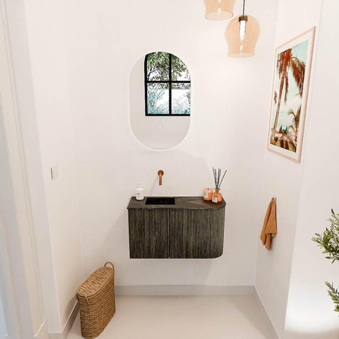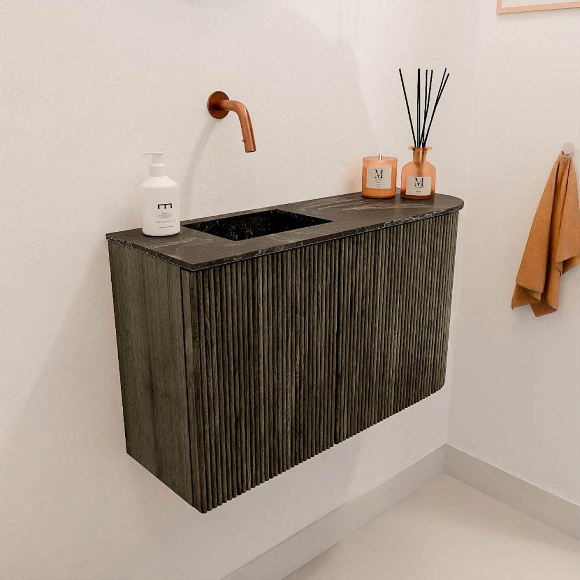 Mondiaz JOYA-DLUX Meuble de salle de bains 71,6cm - arrondi droit couleur Shadow - Vasque FAYE position Gauche Sans trou de robinet couleur Lava