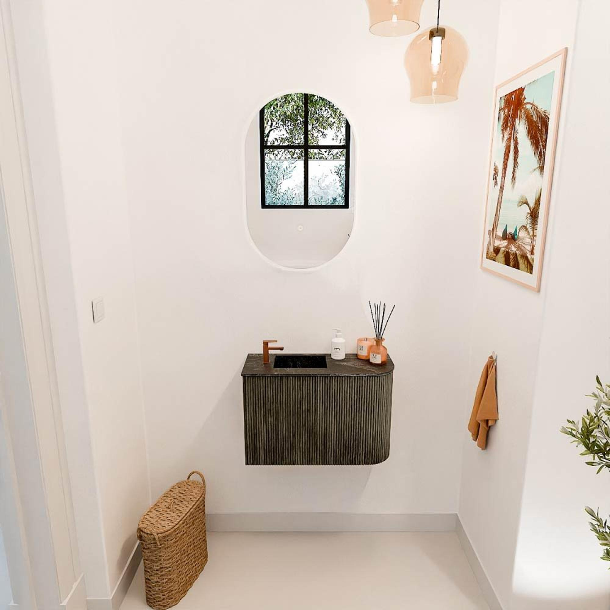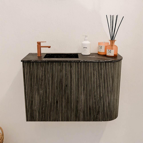 Mondiaz JOYA-DLUX Meuble de salle de bains 61,6cm - arrondi droit couleur Shadow - Vasque FAYE position Gauche 1 trou de robinet couleur Lava