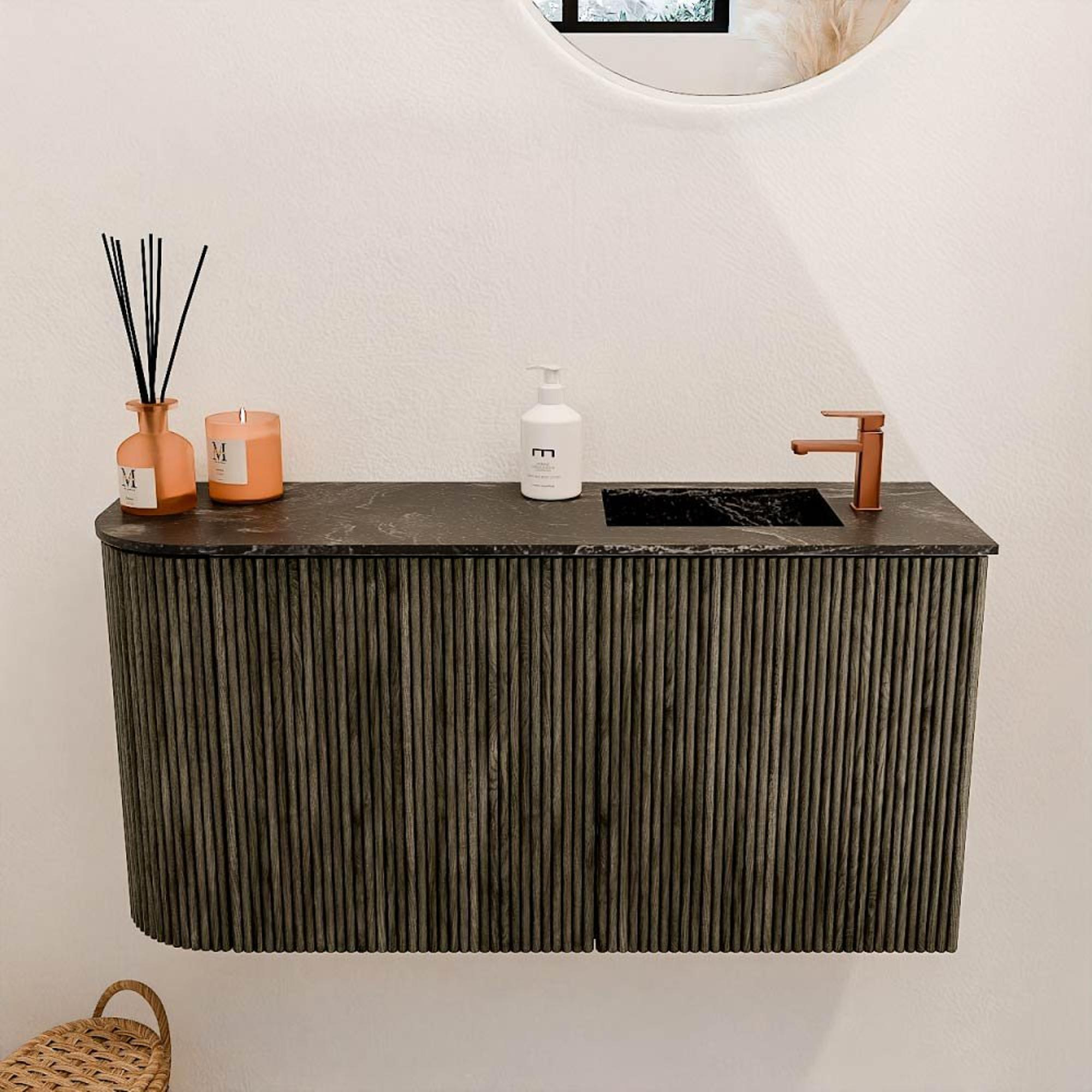 Mondiaz JOYA-DLUX Meuble de salle de bains 81.6cm - arrondi gauche couleur Shadow - Vasque FAYE position Droite 1 trou de robinet couleur Lava.