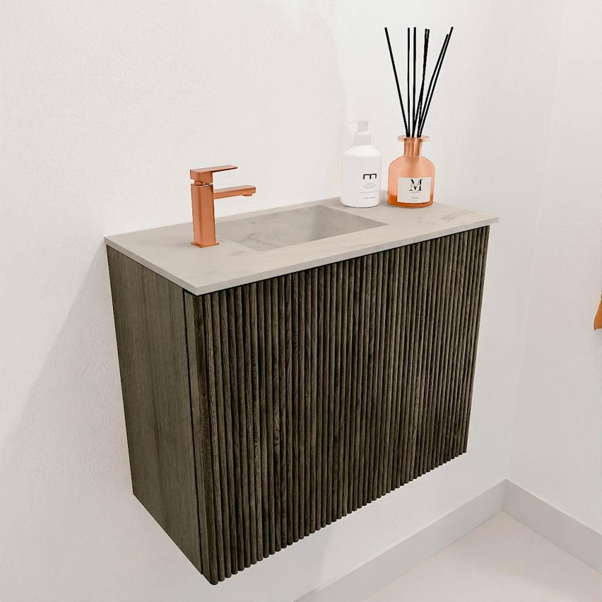 Mondiaz JOYA-DLUX Meuble de toilette 50cm - couleur Shadow - Vasque FAYE position Gauche 1 trou de robinet couleur Opalo