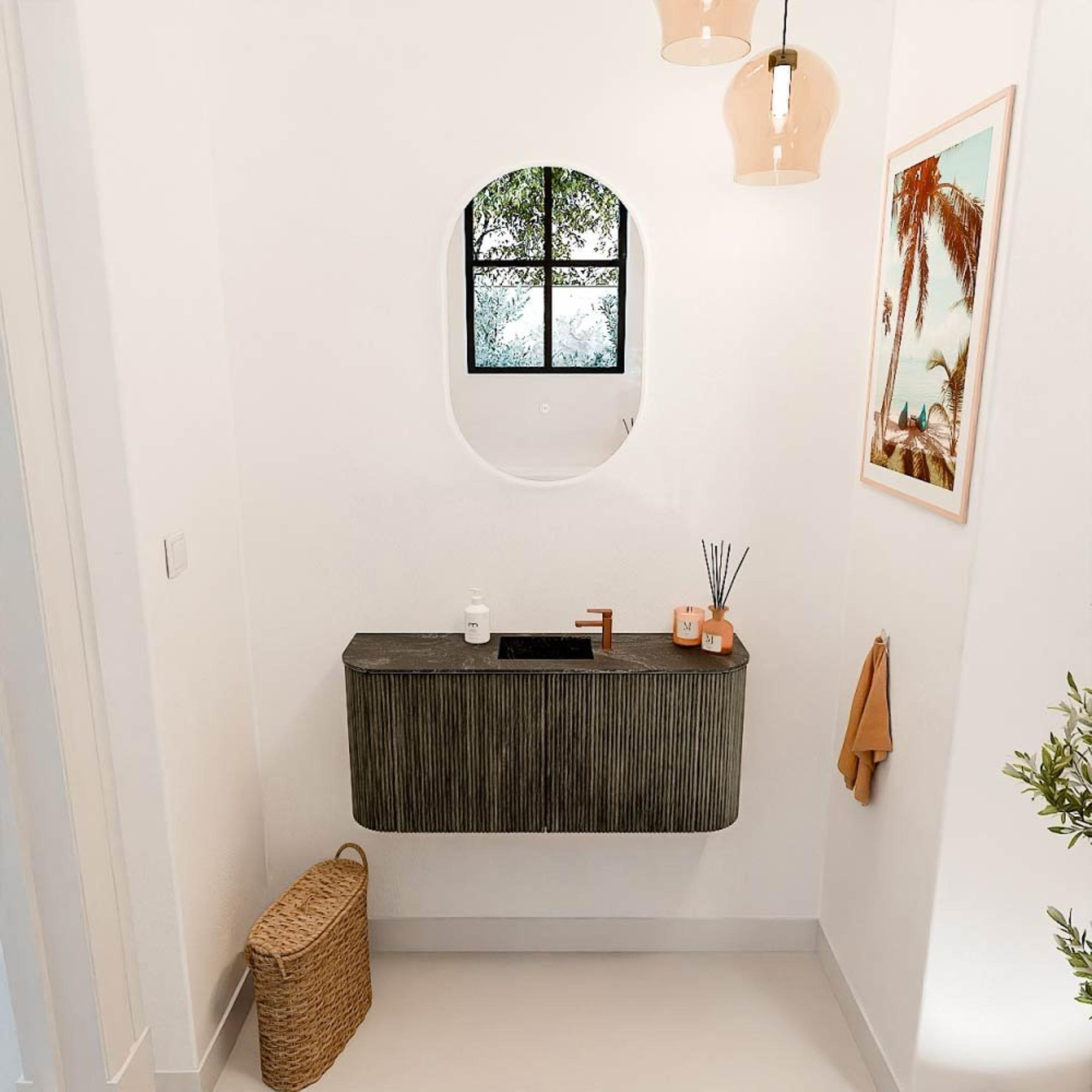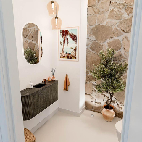 La combinaison unique d'une couleur mate Shadow et de la vasque sombre Lava offre un aspect intemporel et élégant. Les coins arrondis des deux côtés donnent au meuble une forme douce et organique qui paraît à la fois moderne et accueillante. Ce meuble s'intègre facilement dans différents styles d'intérieur, du minimaliste épuré au chaleureux et naturel. Grâce à la finition de haute qualité et à l'utilisation de chêne massif sur le devant, le meuble dégage qualité et savoir-faire. Vous créez ainsi une salle de bains qui est non seulement fonctionnelle, mais aussi un véritable point de mire.