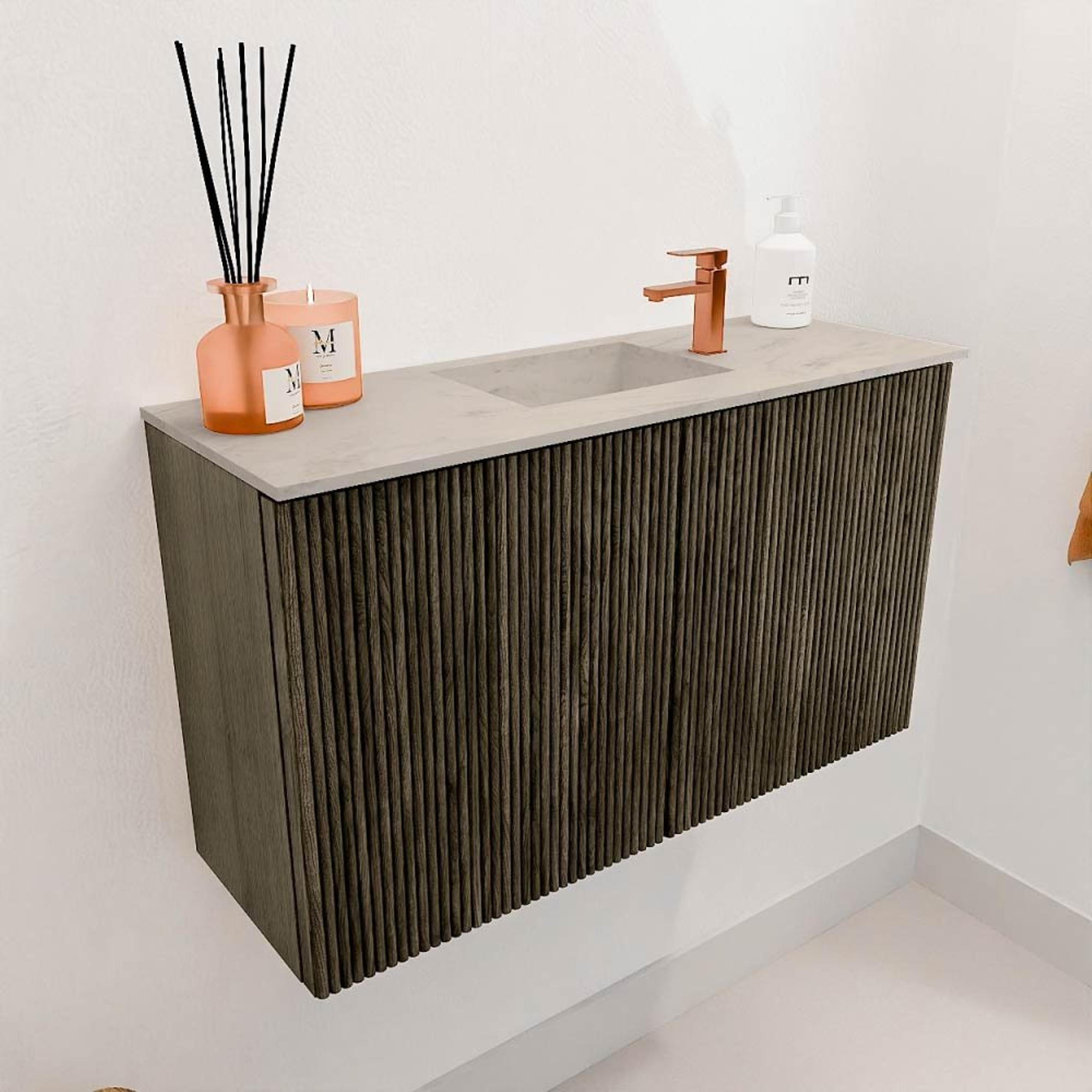 Mondiaz JOYA-DLUX 70cm meuble de salle de bains - couleur Shadow - Vasque FAYE position Milieu 1 trou de robinet couleur Opalo.