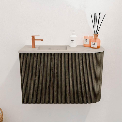 Mondiaz JOYA-DLUX Meuble de salle de bains - 61,6cm - arrondi droit couleur Shadow - Vasque FAYE position Gauche 1 trou de robinet couleur Opalo.
