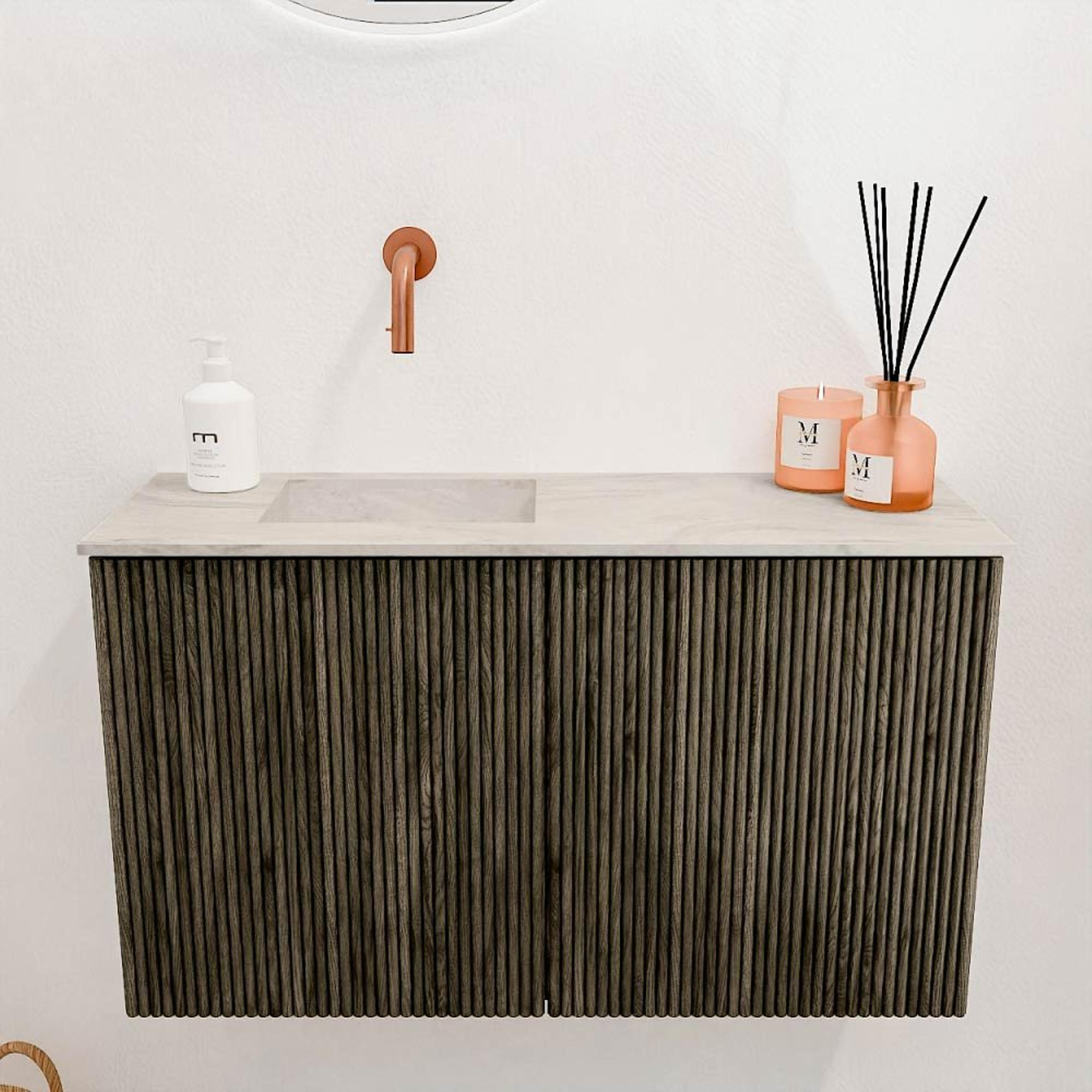 Avec ce magnifique meuble, vous donnez immédiatement à votre salle de bains un aspect élégant et chaleureux. Il combine un design moderne avec des matériaux naturels, ce qui en fait un véritable point focal dans votre espace. Grâce aux dimensions intelligentes de 70 cm de large et une profondeur de 24,5 cm, le meuble s’adapte parfaitement aussi bien aux salles de bains compactes qu’aux plus spacieuses. L’association de la couleur profonde et douce Shadow avec la vasque claire en Ostra crée un beau contraste qui dégage calme et élégance. Ce meuble n’est pas seulement beau à voir, il est aussi extrêmement pratique : la vasque est placée à gauche sans trou de robinet, vous permettant de choisir vous-même le robinet qui correspond le mieux à votre style et à vos souhaits. Ainsi, vous créez une salle de bains qui vous appartient entièrement, où vous commencez et terminez chaque jour avec plaisir.