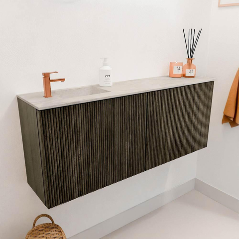Mondiaz JOYA-DLUX Meuble de salle de bains 100cm - couleur Shadow - Lavabo FAYE position Gauche 1 trou de robinet couleur Ostra.