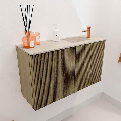 Mondiaz JOYA-DLUX 70cm meuble de salle de bains - couleur Dusk - Vasque FAYE position Droite 1 trou de robinet couleur Frappe.